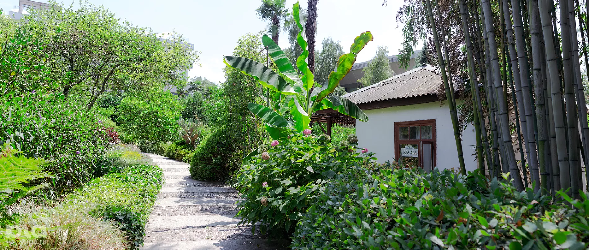 Площадь сада, на территории которого можно увидеть киви, бананы, фейхоа, хурму, бамбук, камелии, кактусы и прочие субтропические растения, составляет всего два гектара.