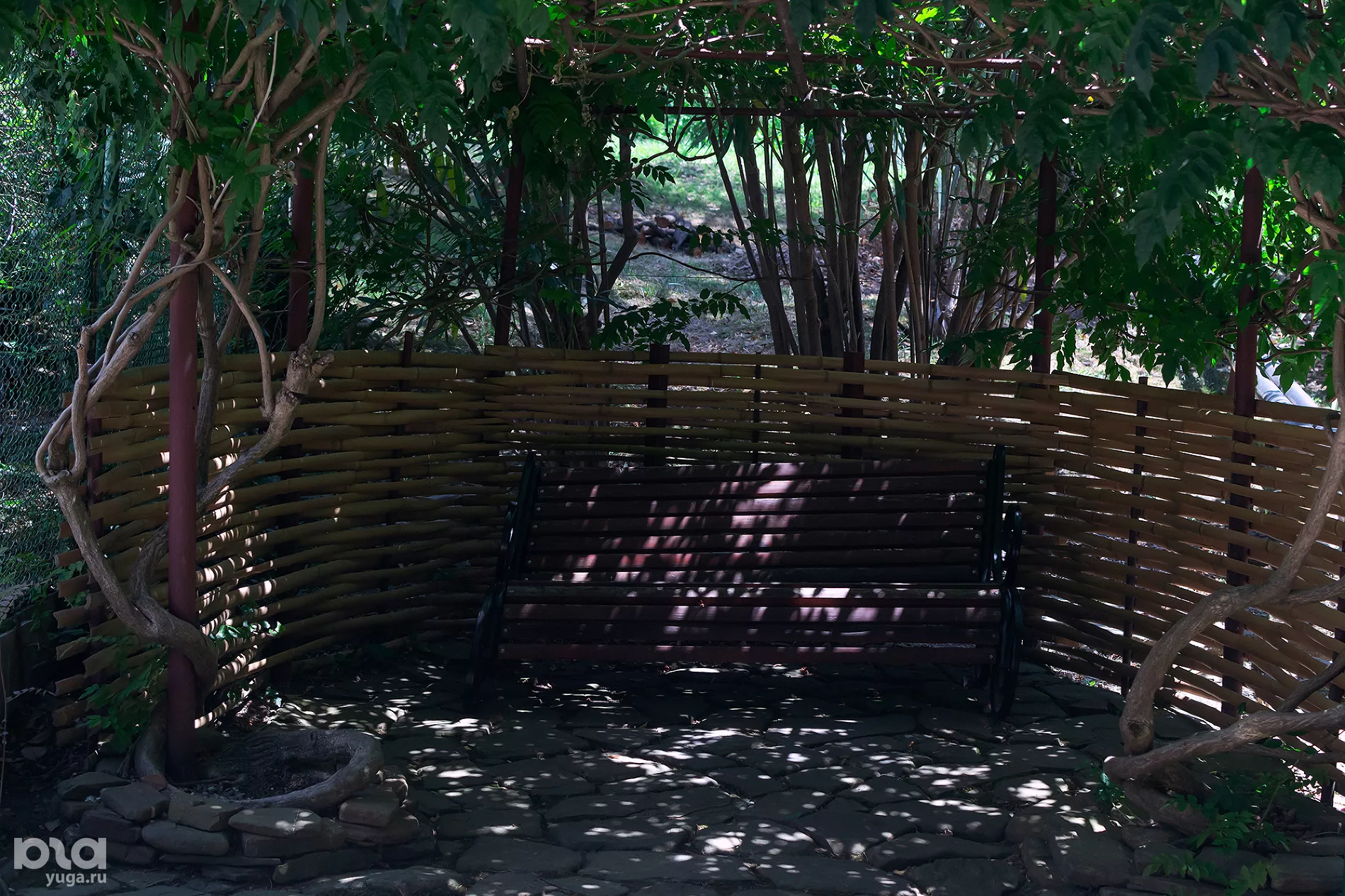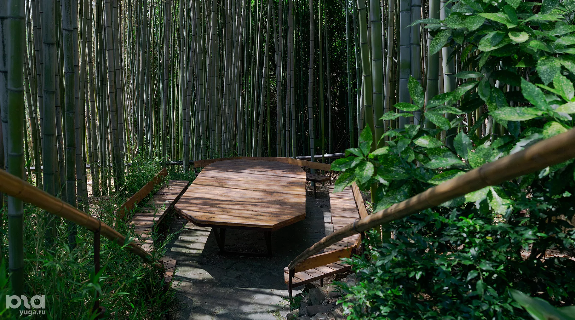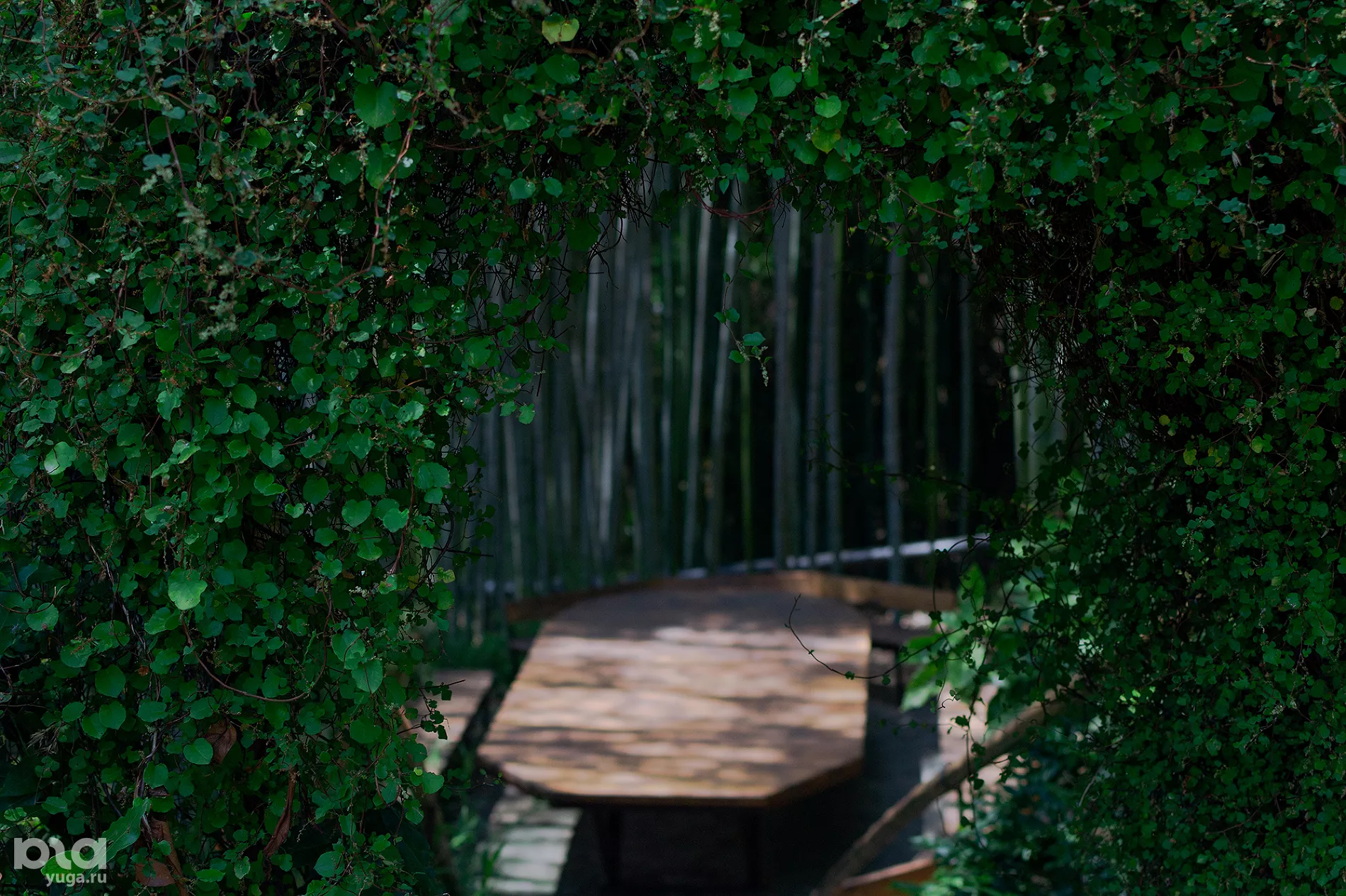 Справа от тропинки к кассам легко не заметить лестницу за аркой, заросшей декоративной лианой. Она ведет в уединенную бамбуковую рощицу.