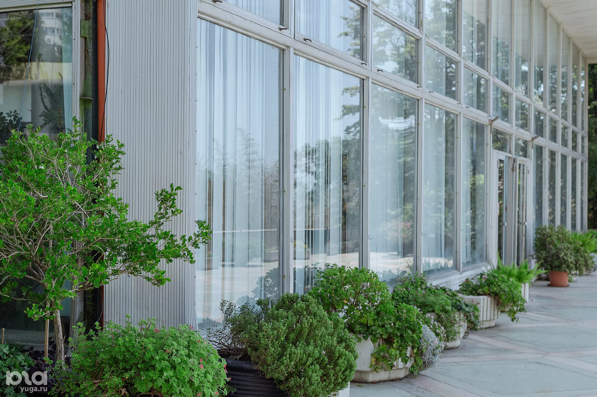В теплое время года большинство растений из павильона выносят на открытую террасу. Многие экземпляры подписаны — можно узнать название и семейство цветка.