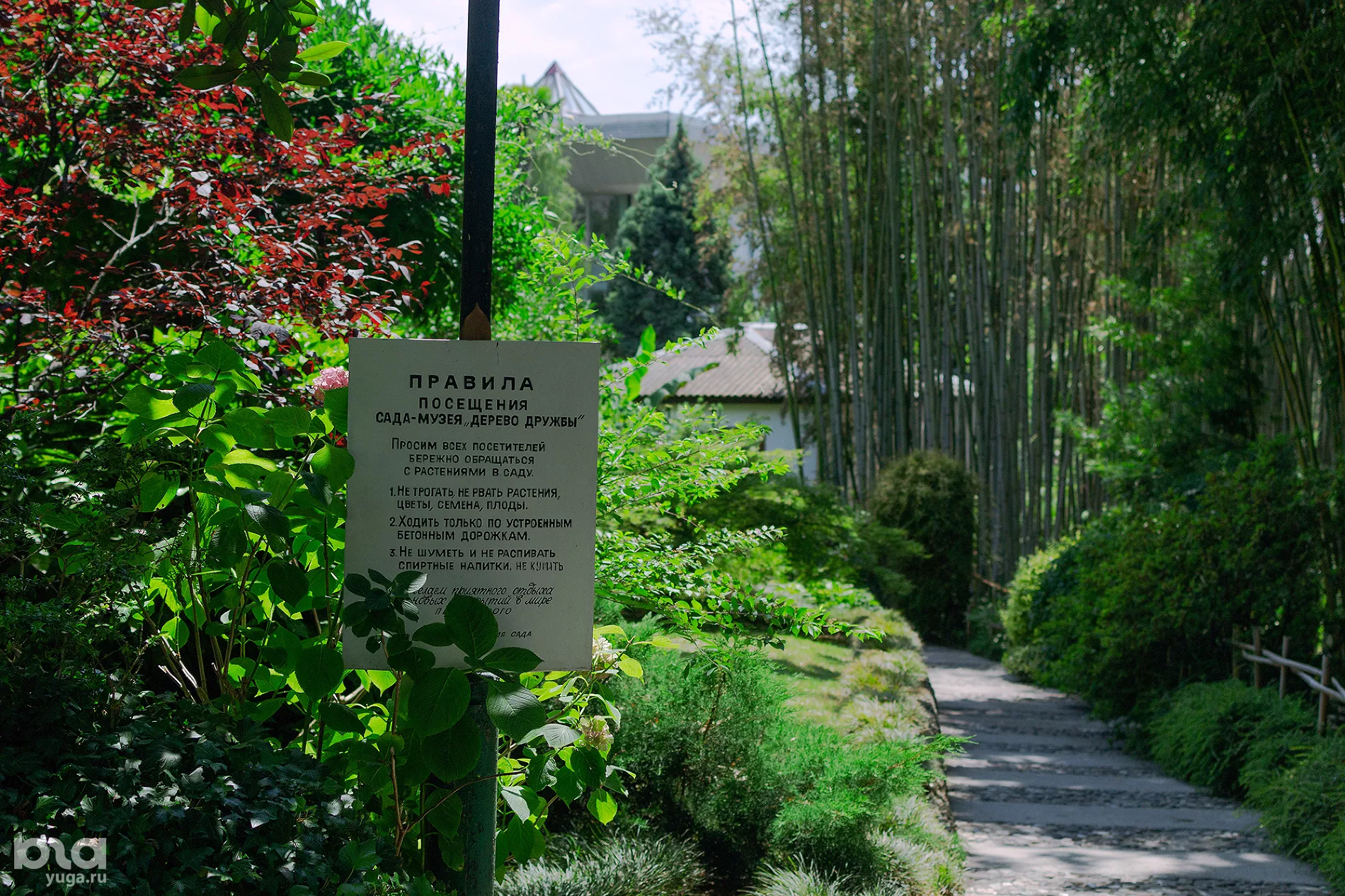 НИИ занимал огромную площадь от дендрария до Бытхи по Курортному проспекту и еще около 10 км в сторону гор. На этой территории было много всего: сады, поля, теплицы, станции, мастерские. И, конечно, сад-музей Дерева Дружбы. Парадным входом считался путь от санатория «Золотой колос», но сейчас так в сад не попасть. Слева на входе стояла будка, в ней продавались билеты и печатная продукция. Однажды я купил там комиксы сочинского художника Анатолия Кулинича, сюжет уже позабылся — что-то про перестройку и инопланетян. Жанр был редкий, заграничный, аналогом считался только журнал «Крокодил».