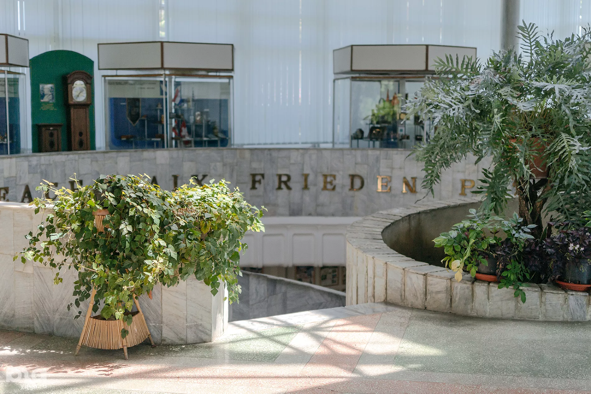 Подарки саду слали со всех концов света. Для их хранения построили светлый просторный павильон в модернистском стиле. Музей, открытый в павильоне в 1981 году, — настоящая ода пацифизму: одна из экспозиций посвящена ужасам Второй мировой войны, в других витринах можно увидеть призывы политиков к ответственности за судьбу человечества, а винтовую лестницу окружает слово «мир» на разных языках.