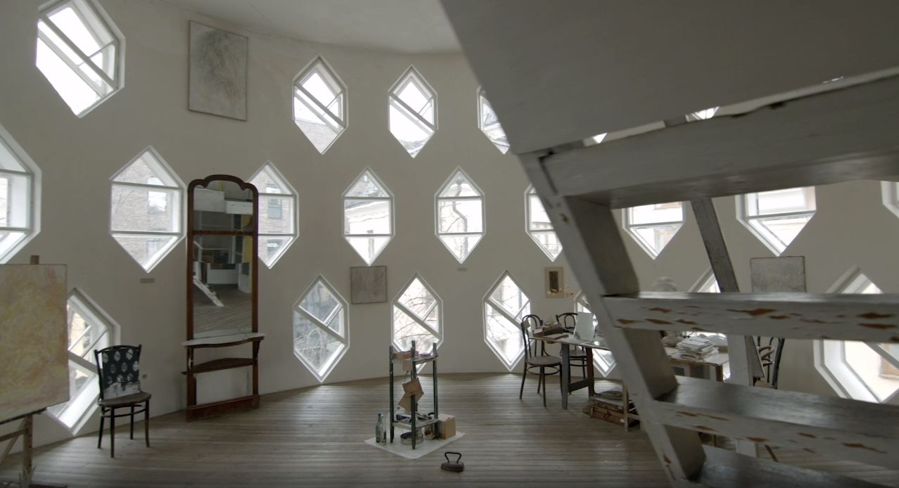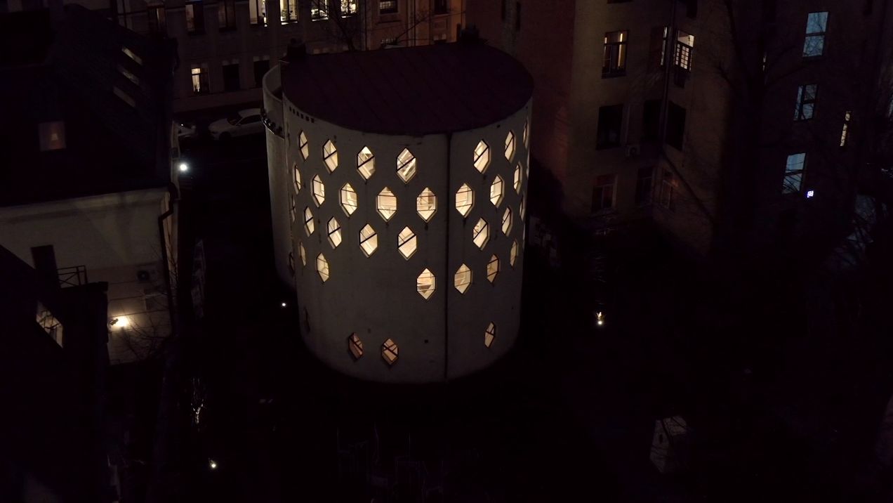 В центре Москвы, на Кривоарбатском переулке, 10 есть необычный дом: два будто утопленных друг в друга цилиндра образуют форму восьмерки, а стены усеяны окнами-сотами. История этого здания и его создателя открыла второй день сочинского кинофестиваля.