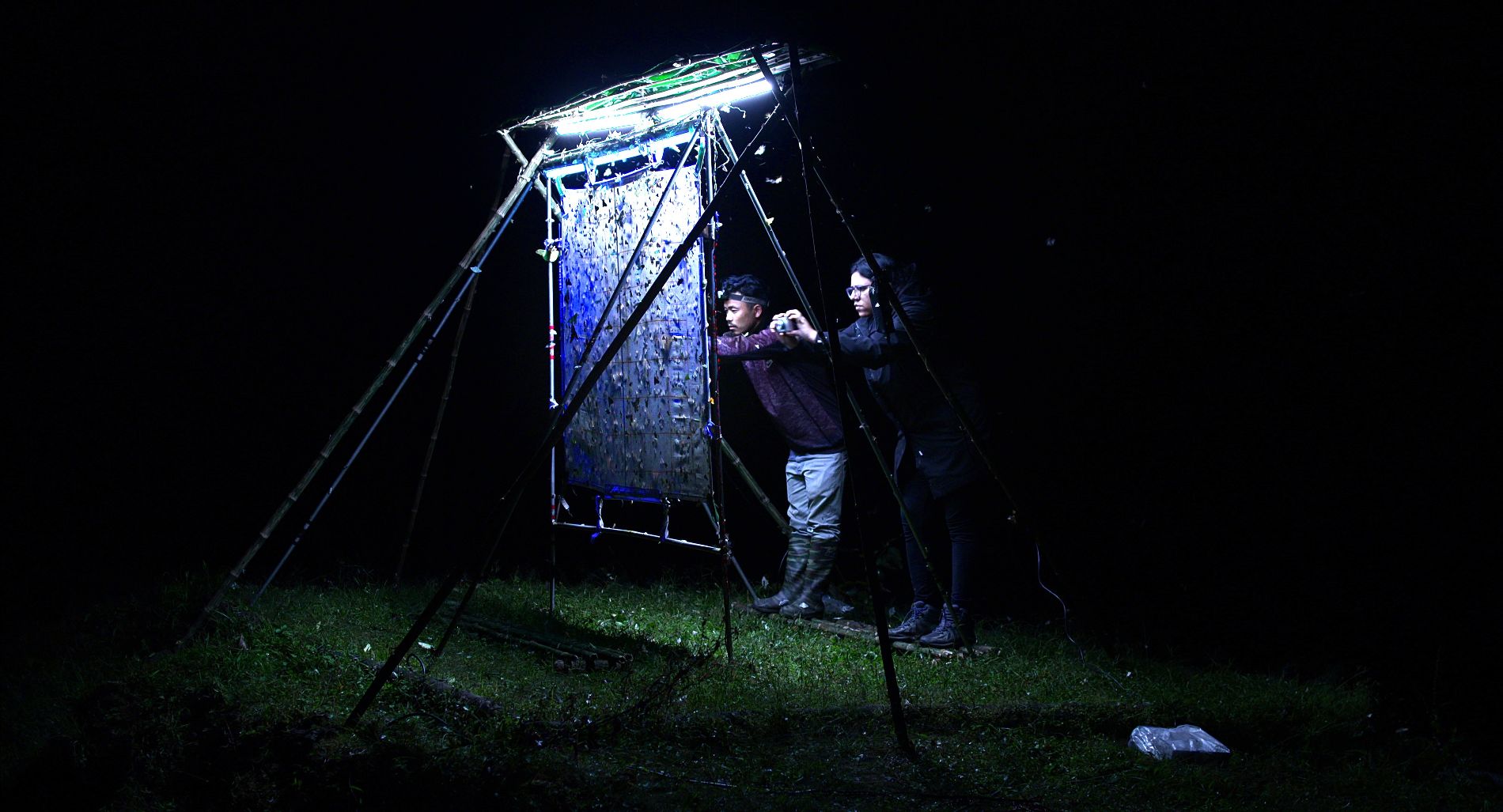 Каждую ночь посреди этой медитативной лесной симфонии двое ученых делают 400 снимков насекомых на разных высотах: крупные бражники в основном обитают в прохладе выше в горах, а мелкие — там, где теплее. Для наблюдений энтомологи раз за разом устанавливают специальный разлинованный экран в новом месте, направляют на него свет и ждут: