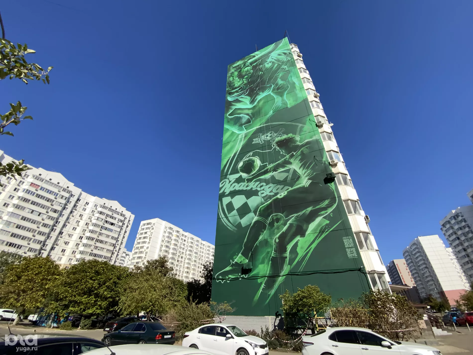 «Всем нужно было отразить в своих произведениях частичку Краснодара. И мой мурал напрямую отражает эту концепцию. Картина посвящена футбольному клубу «Краснодар». Также мне хотелось через этот образ подчеркнуть свое уважение к Сергею Галицкому. Так как он человек скромный и не любит публичность, его самого мне бы изобразить не позволили. Поэтому я сделал арт-объект, посвященный одному из его главных детищ», — рассказал Филиппов.
