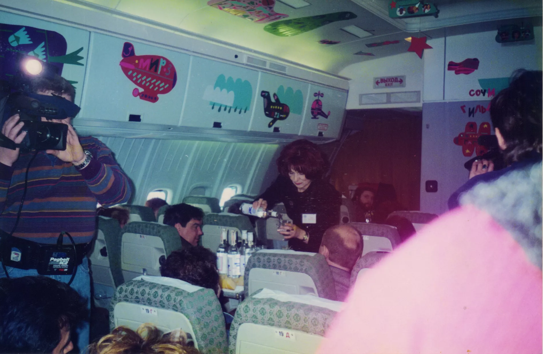 Спустя три года, также в День космонавтики, «Гильдия красивых» организовала, возможно, самую дерзкую акцию в своей истории — выставку-перформанс на борту самолета Ил-86 «Внуковских авиалиний», выполнявшего рейс Сочи–Москва. Договориться об этом необычном мероприятии с авиакомпанией смогла участница группы Ирэн Ильенкова. За час до вылета художники разместили свои работы и инсталляции на стенах, потолке, иллюминаторах и даже в туалете авиалайнера. Темой экспозиции стали небо и воздухоплавание: самолеты, вертолеты, аэростаты, звезды, облака, бабочки. Как только самолет набрал высоту, Даниил Да начал читать свои стихи по громкой связи, а участницы группы угощали пассажиров фруктами и бесплатной водкой. По воспоминаниям художницы Ирэн Ильенковой, от импровизированного фуршета не отказался даже пилот. Все это происходило на высоте 10 тыс. метров.