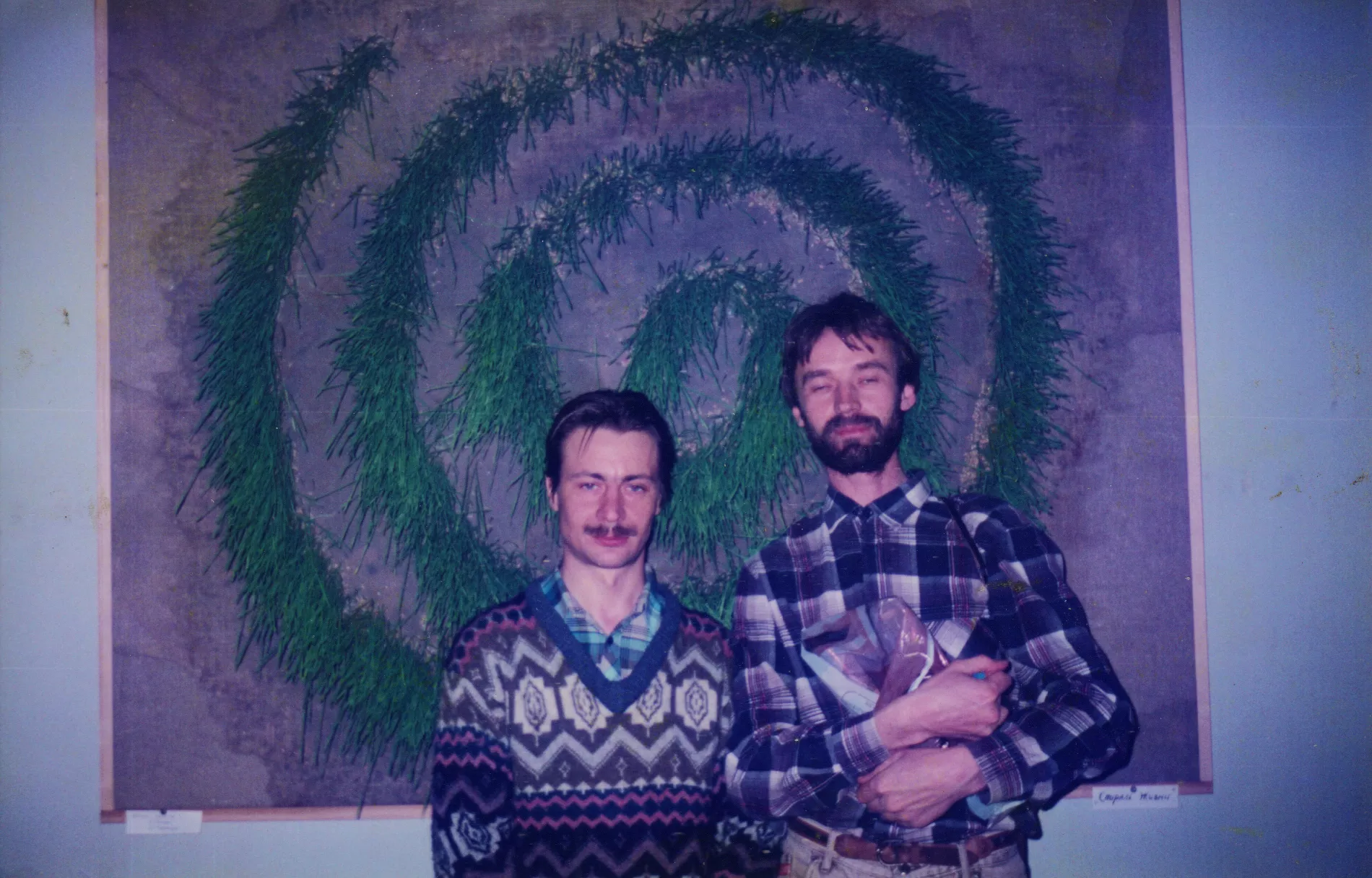 Юрий Бирюк и Юрий Кузнецов у картины «Спираль жизни». Выставка «Подробности роста», Сочинский художественный музей им. Д.Д. Жилинского. 1996 год © Фото архивного фонда «Художественная среда Сочи»