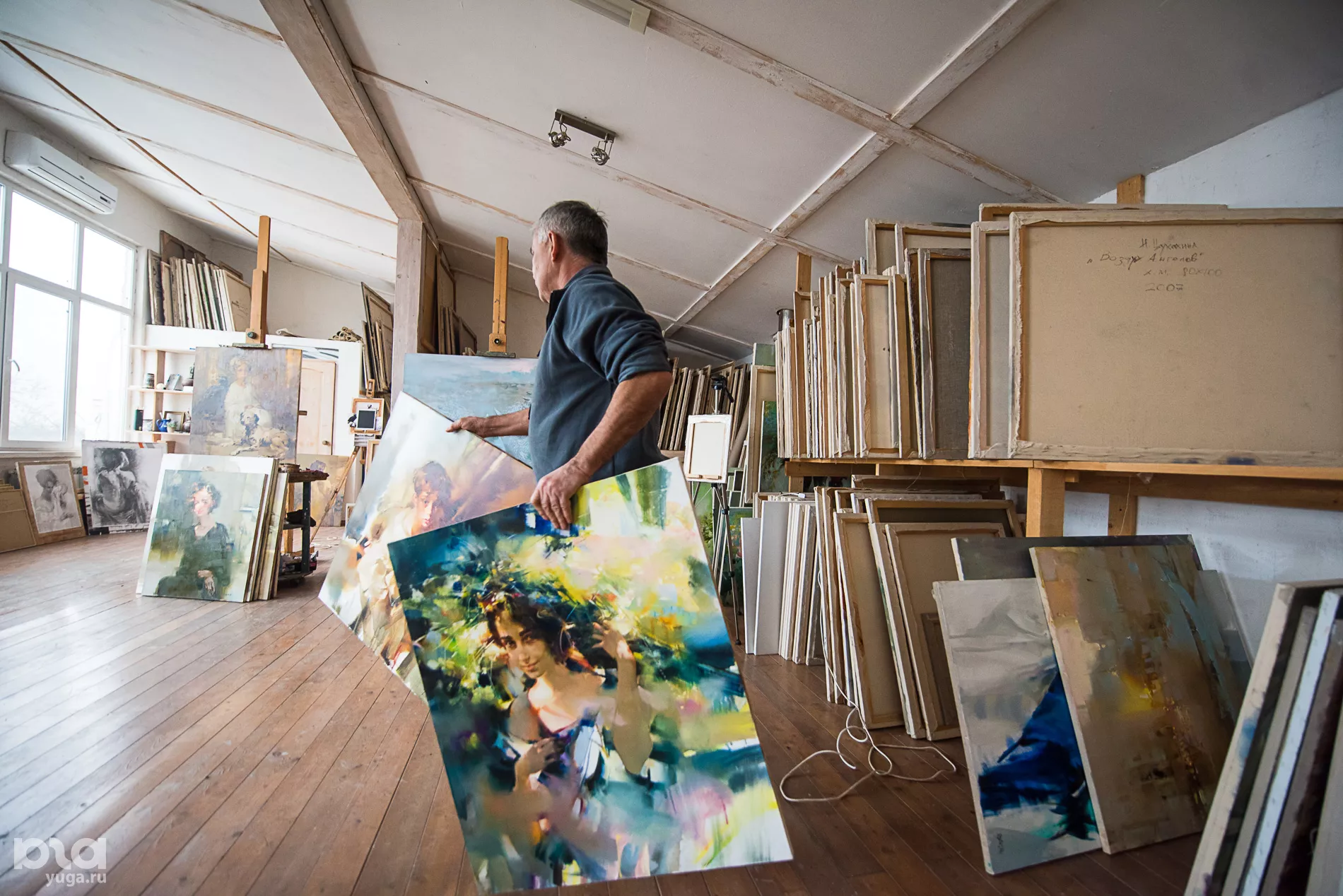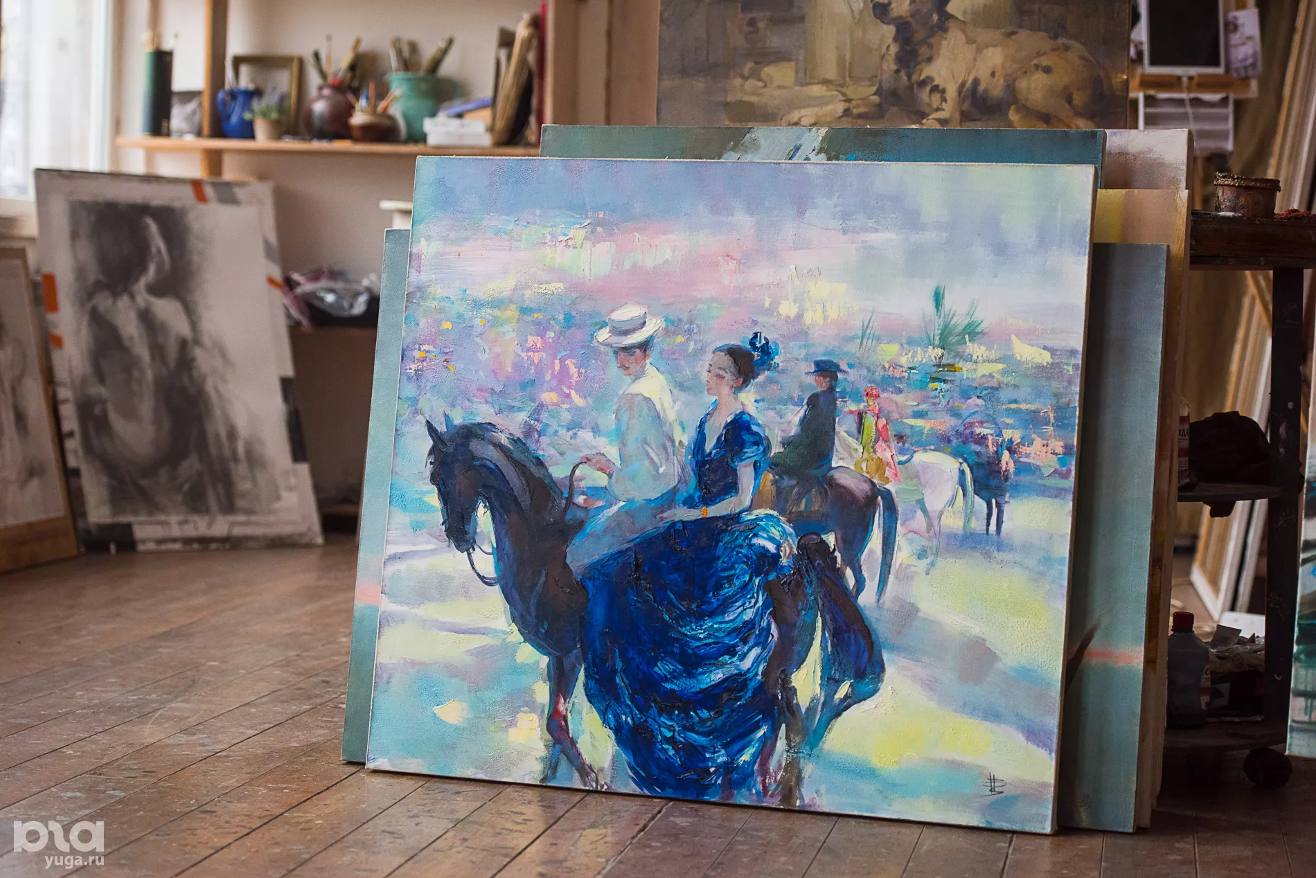 В: Конечно. Средняя цена — 100–150 тыс. рублей, если речь не идет о большом полотне. Это стоимость портрета, сделанного на заказ, или пейзажа. Почему мы называем такую цифру? Дешевить нельзя, но и заламывать цену тоже. По международным меркам, это совсем недорого, и надо понимать, что далеко не каждый день случается продать картину. Очень много работ мы просто дарим родным и друзьям. Некоторые картины мы не продаем — это наша коллекция. Например, портреты наших родных — как мы можем их продать? Лучше написать ваш портрет или вашего ребенка. Некоторые работы, не портретные, бывают чем‑то дороги — такие картины мы тоже не продаем.