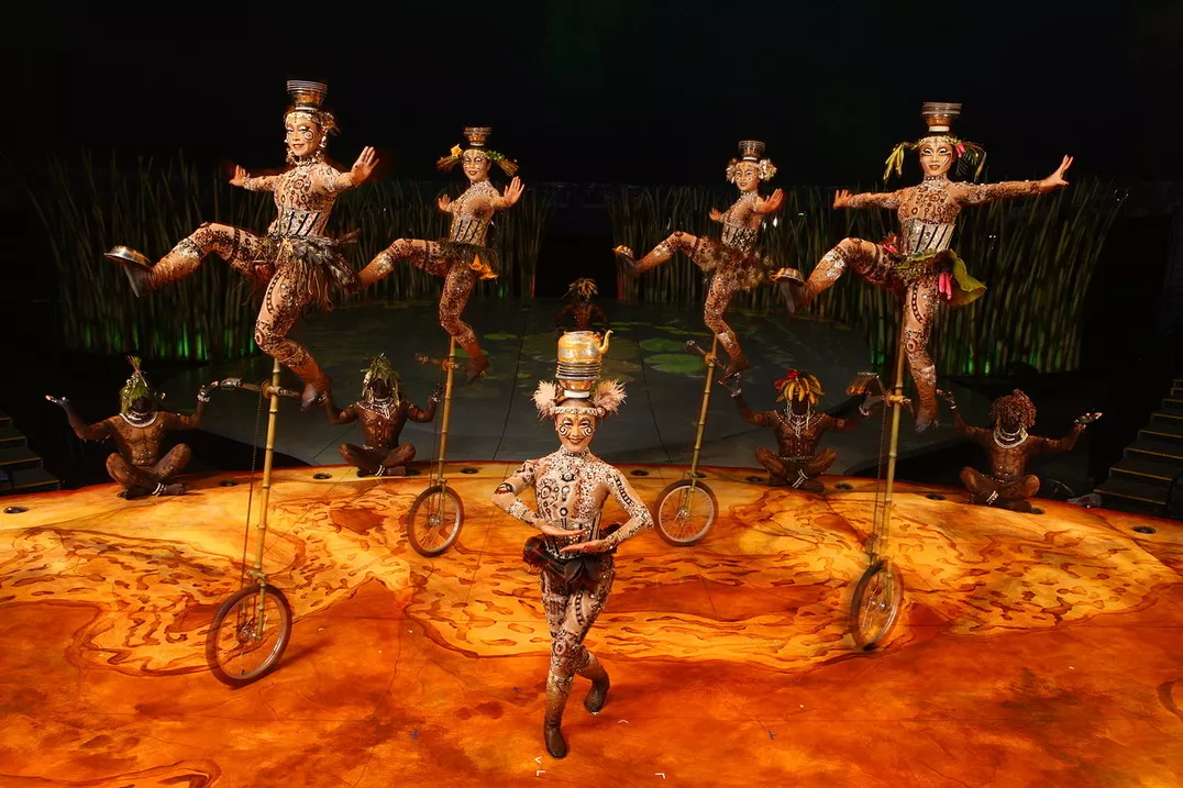 В шоу участвуют 46 акробатов, артистов, музыкантов и певцов из 17 стран (Австралия, Беларусь, Бельгия, Бразилия, Германия, Испания, Италия, Канада, Китай, Молдавия, Монголия, Россия, США, Украина, Финляндия, Чехия и Япония). Труппу шоу поддерживает команда, состоящая из 42 сотрудников из 12 стран (Австралия, Великобритания, Испания, Канада, Колумбия, Мексика, Новая Зеландия, Россия, Сингапур, США, Франция, Япония).