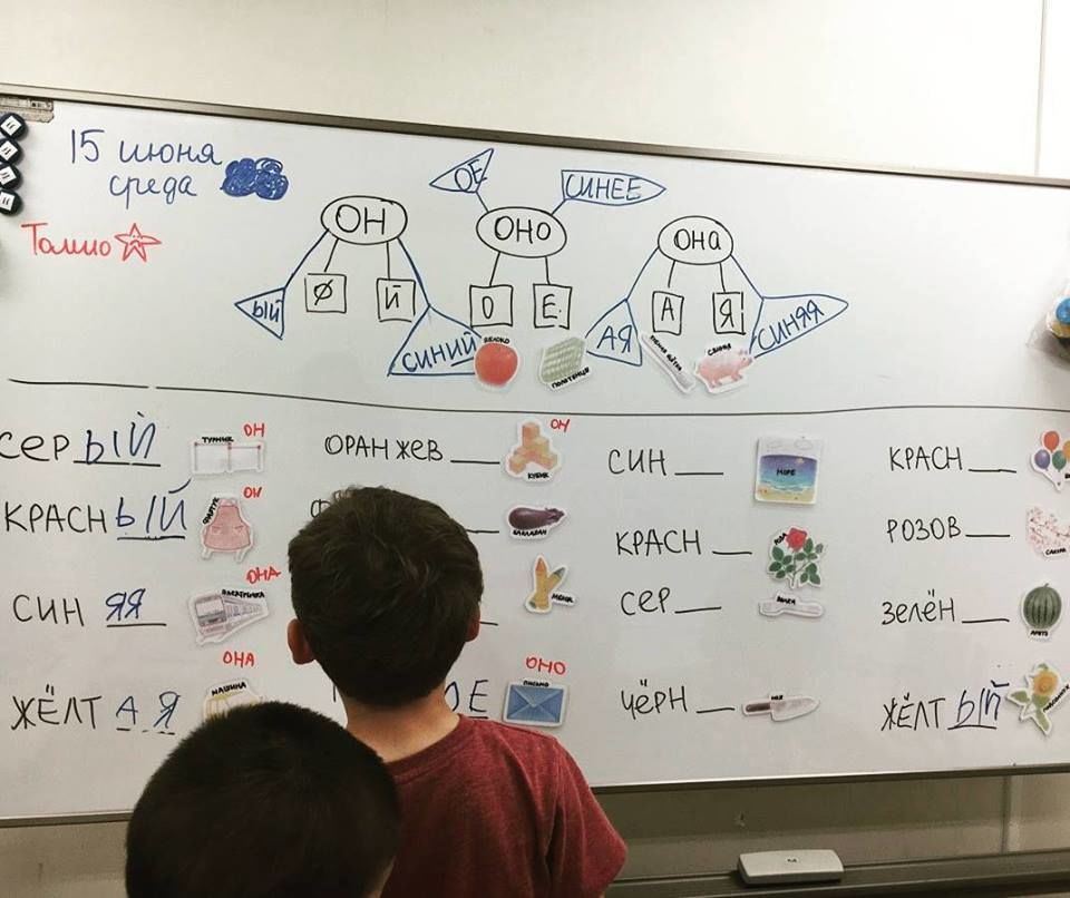 Таким детям непросто учиться. На японском они говорят дома, в школе, с большинством друзей, а на русском — только у нас и, в лучшем случае, с одним из родителей. Кто-то говорит с акцентом, кто-то — без. Если брать среднюю температуру по больнице, детям не дается грамматика, особенно трудно освоить падежи. Многие дети не понимают, почему стул — это он, табуретка — она, а кресло — оно.