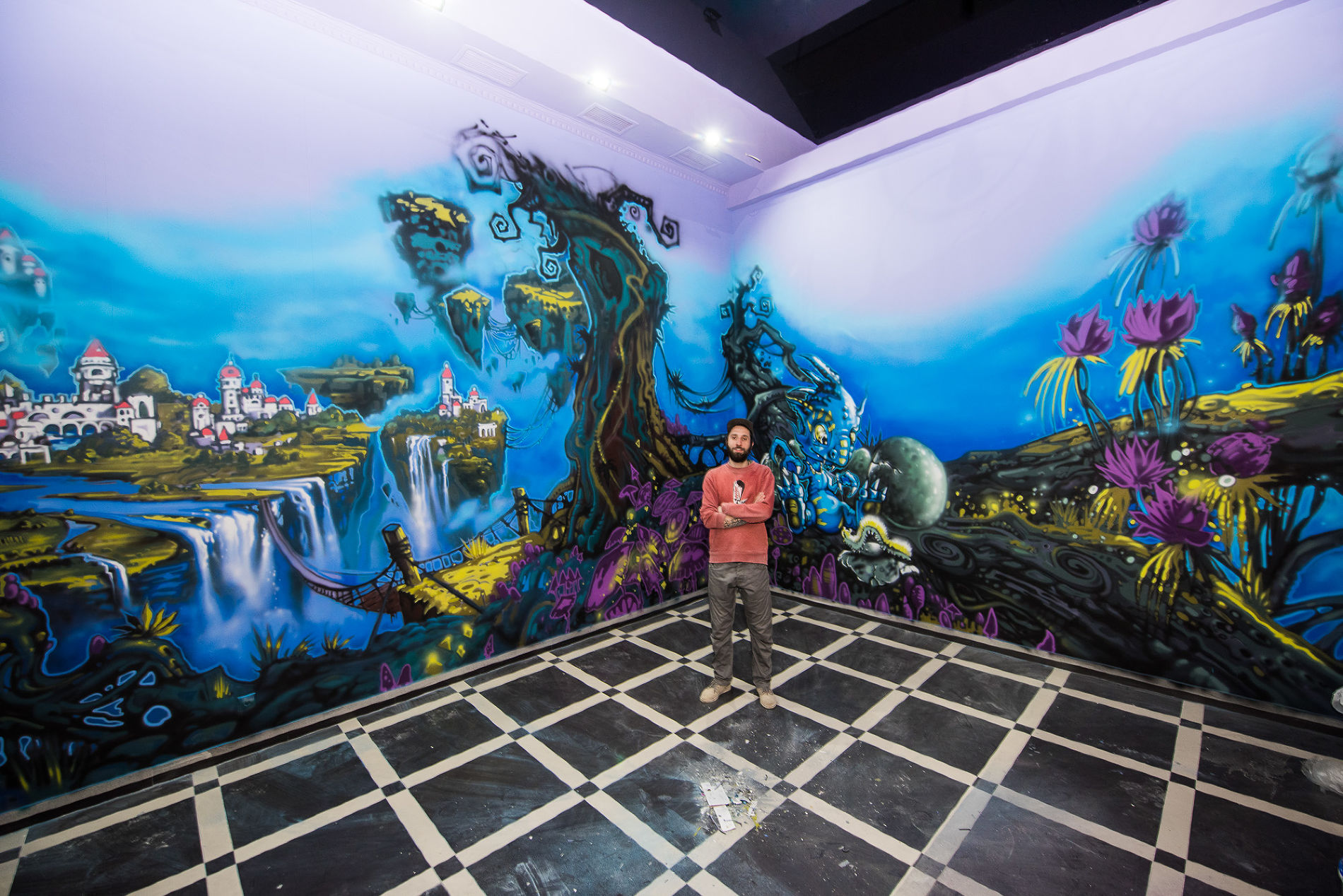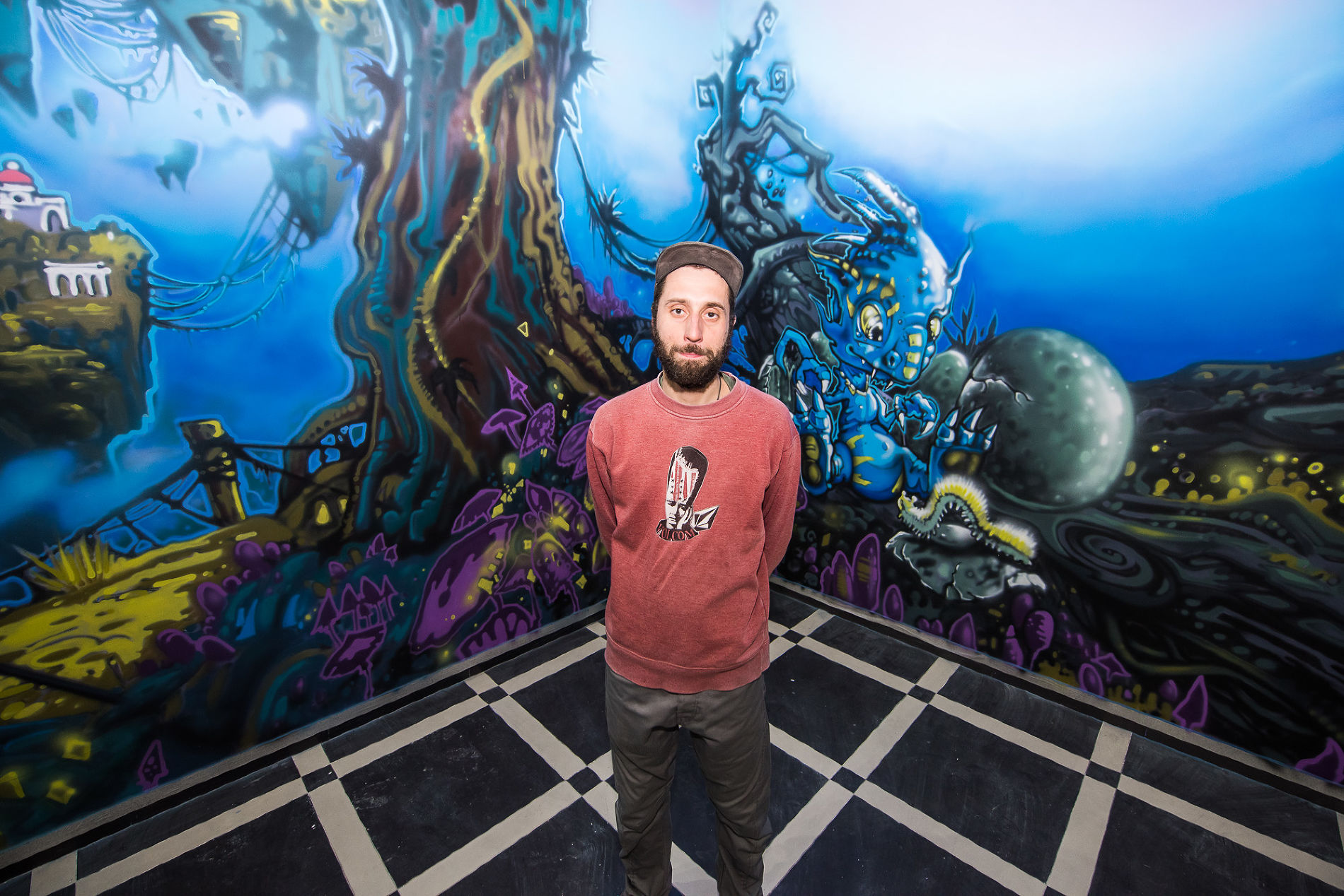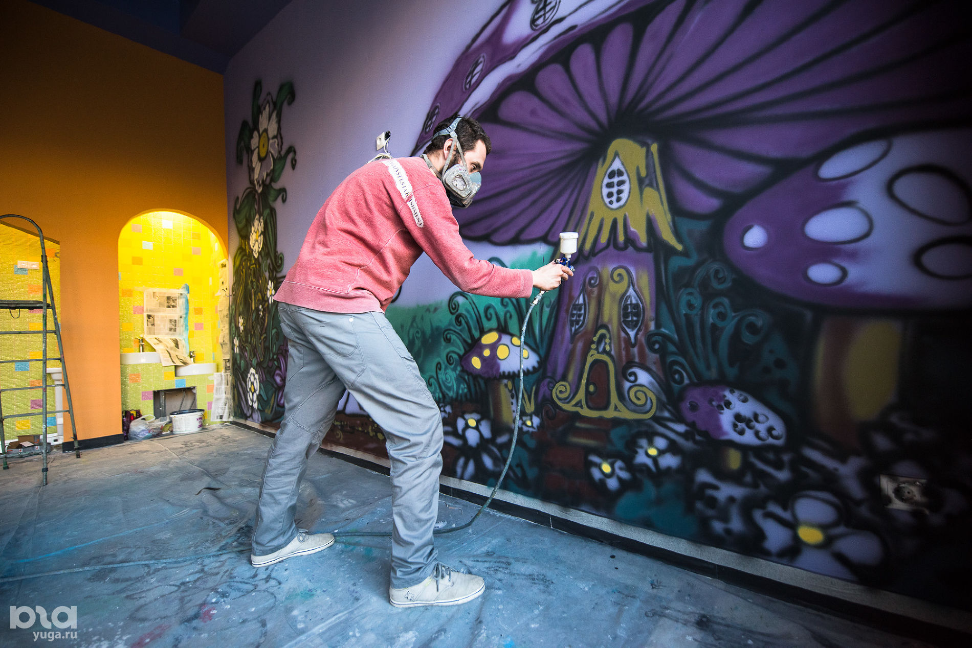 Саша Maslo на фоне росписи в детском центре © Фото Елены Синеок, Юга.ру -