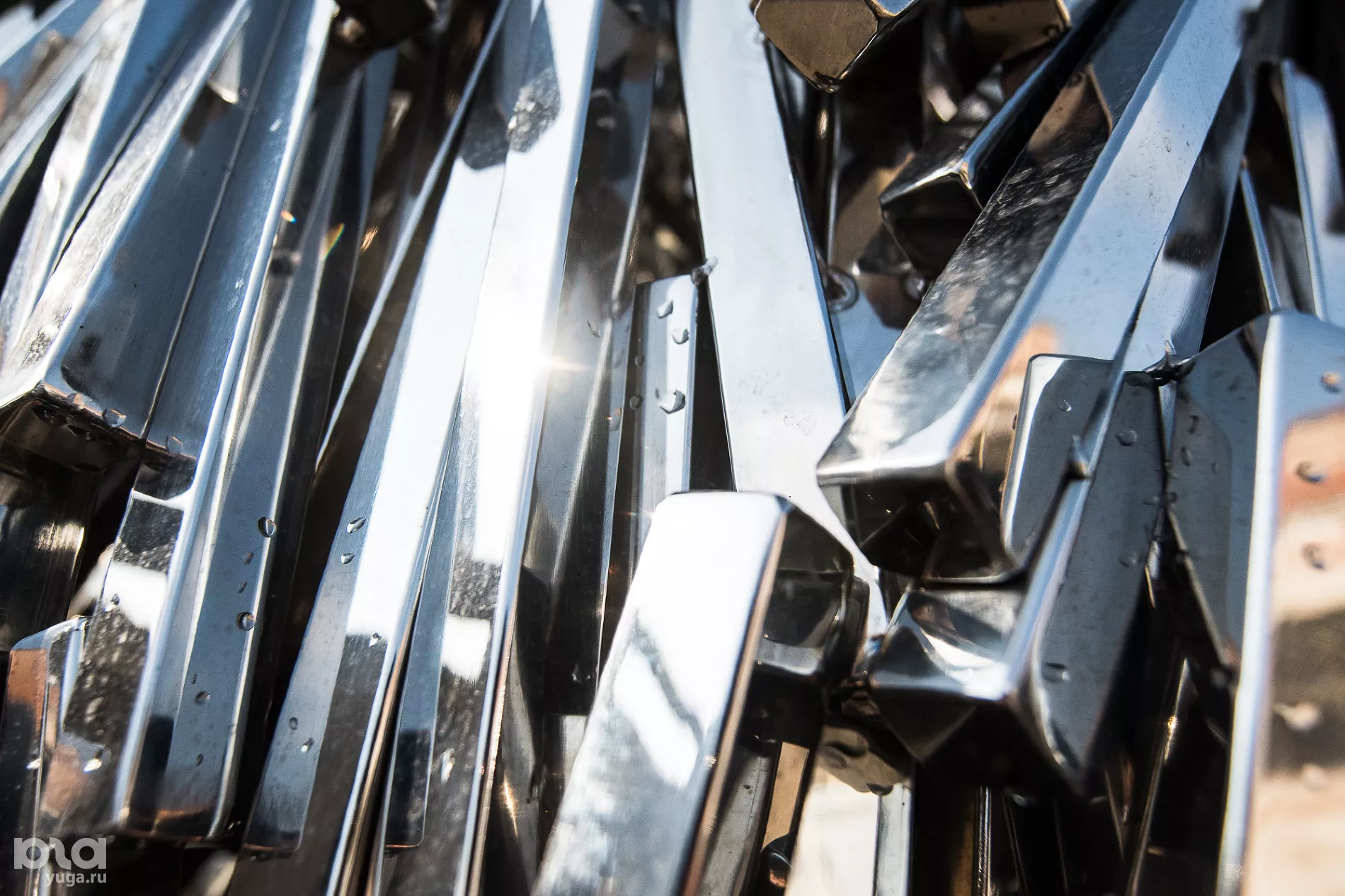 Технически скульптура очень сложная. Она состоит из порядка 2 тыс. палочек из нержавеющей стали, каждую из которых мы отпилили на пиле, выбивали квадратики, заваривали и полировали. Это очень долгий процесс, подготовка материалов заняла два месяца — три человека с утра до вечера изготавливали эти детали. И еще в течение месяца двое монтажников и художник собирали все в композицию. Владимир Омутов показывал мастерам, куда нужно приваривать каждую палочку, и ни одна не параллельна другой, у каждой свой угол!