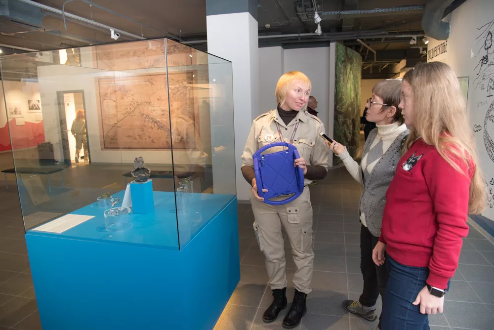 Перед входом в музей, чтобы «оживить» его экспонаты с помощью технологий дополненной реальности, я скачиваю мобильное приложение на смартфон, а дочь арендует планшет. Всего в музее шесть экспозиционных зон. В приложении есть аудиогид, но для нас экскурсию проводит старший экскурсовод Елена Оганесян.