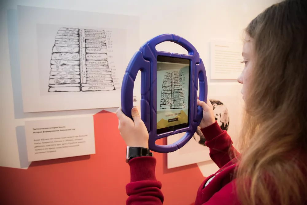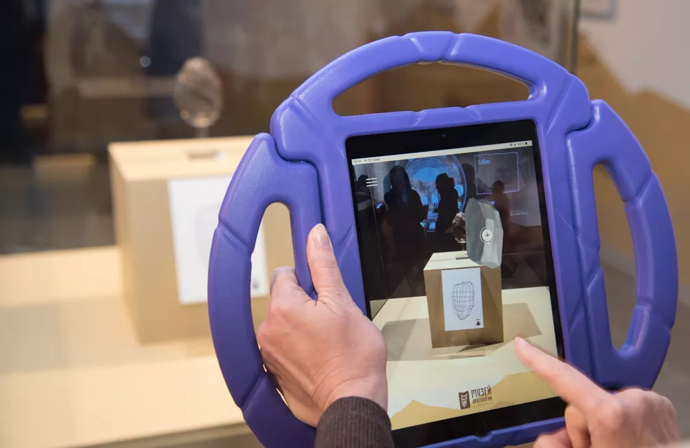 Для дочери самая интересная часть экскурсии — объекты в дополненной реальности. Она наводит планшет на элементы сосуда бронзового века и видит его таким же, как во времена, когда им пользовались. Сосуд «материализуется» благодаря 3D-модели.