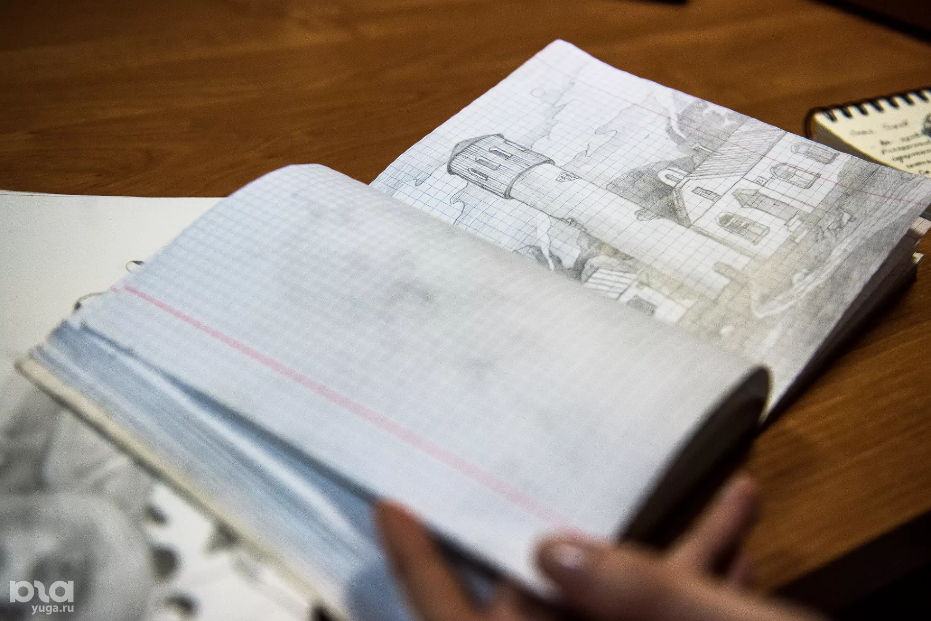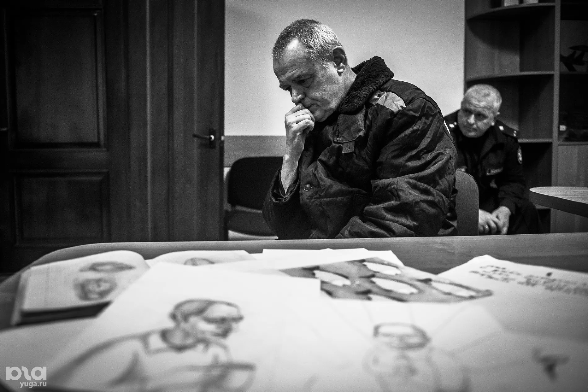 Нас заводят в кабинет, и появляется Стас Серов в черной форменной одежде и с несколькими тетрадями набросков и рисунков. Мы общаемся в присутствии троих сотрудников УФСИН по Краснодарскому краю.