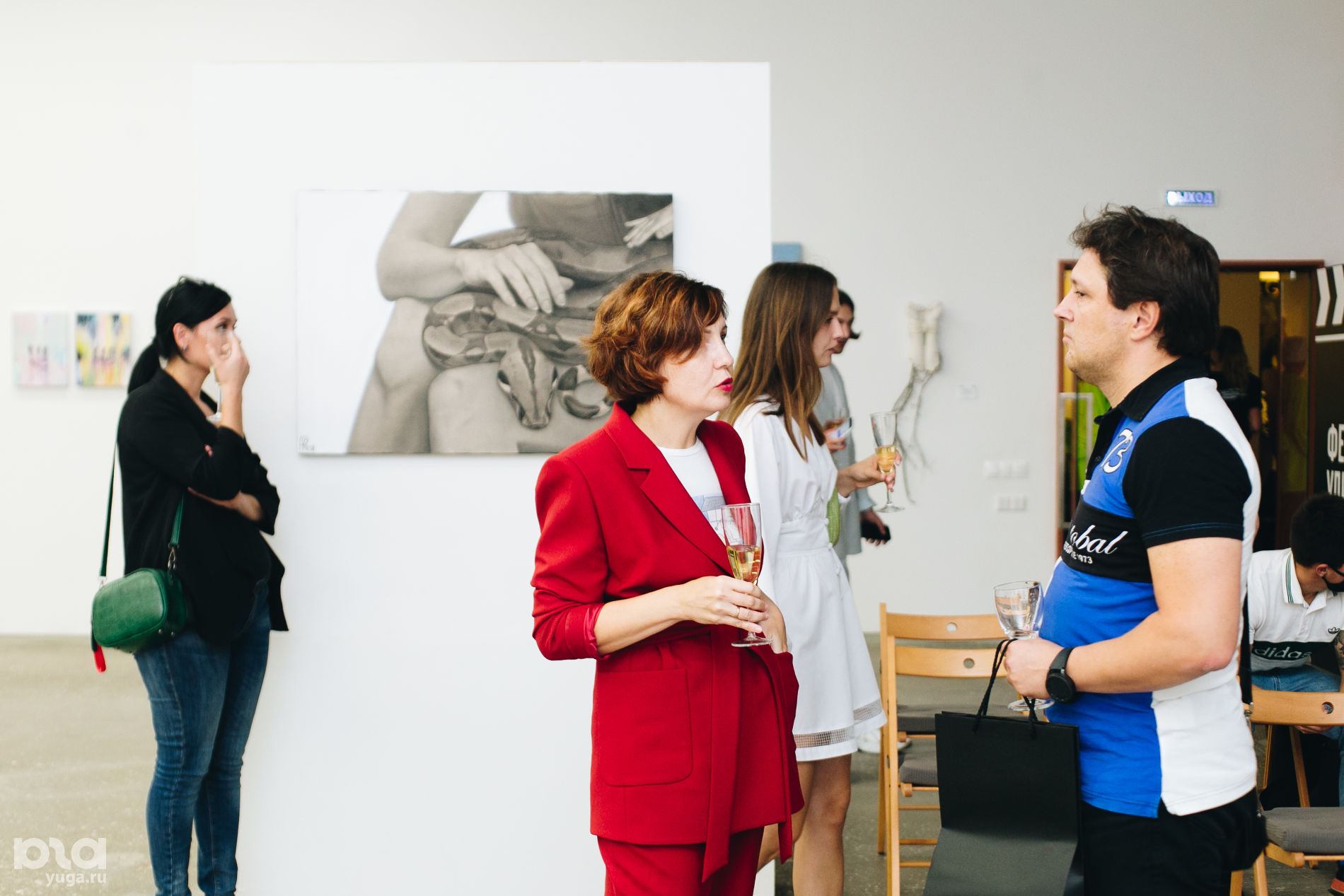 В первый вечер фестиваля прошел пресс-показ для представителей местных СМИ, блогеров и фотографов — им представили четыре короткометражные ленты. В предвкушении показа гости обсуждали новости культуры и искусства, фотографировались на фоне картин и скульптур, снимали истории для инстаграма и просто общались в теплой дружеской атмосфере.