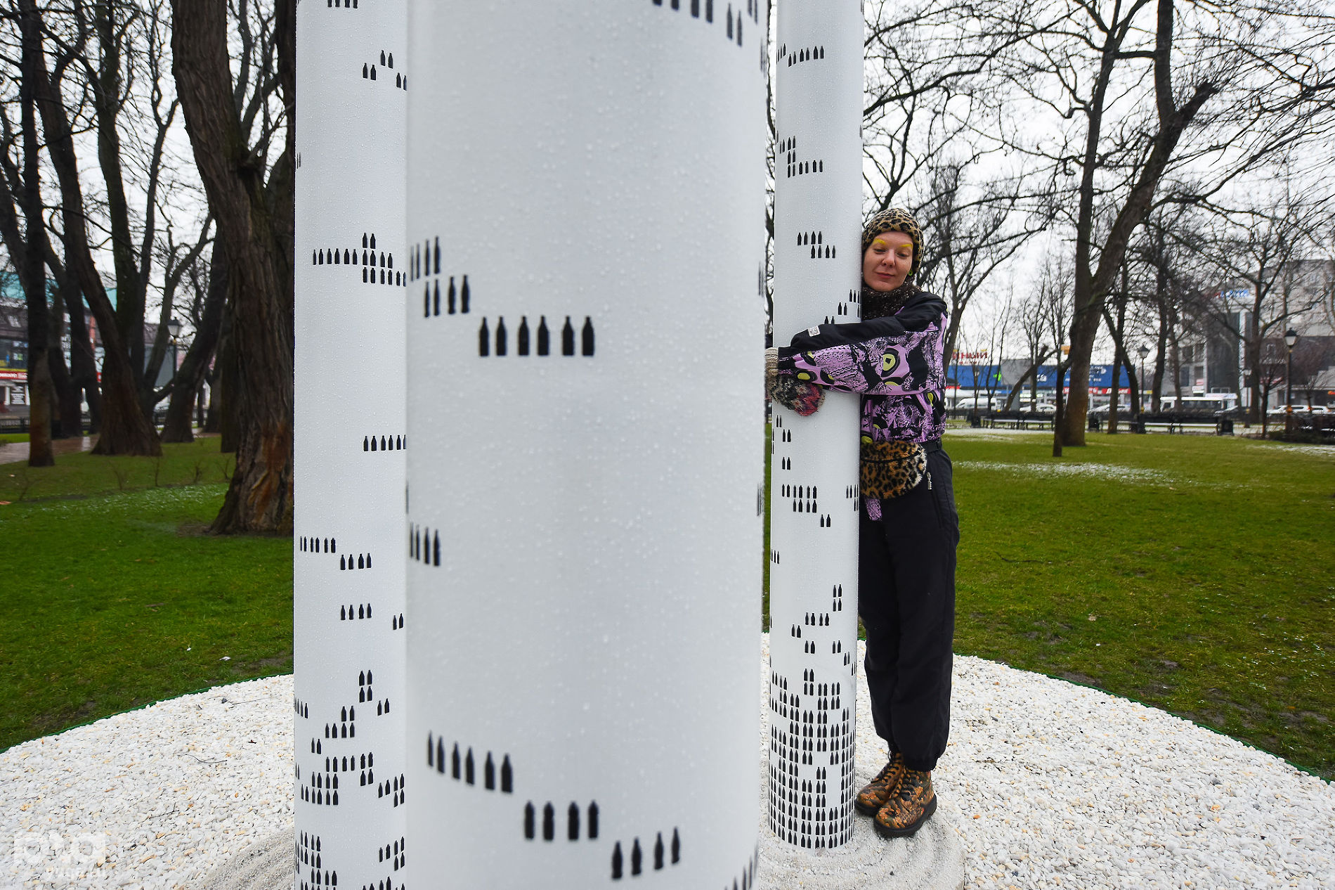 Скульптурную группу авторства Виктора Линского видно из проезжающего трамвая, но, поверьте, при ближайшем рассмотрении всё гораздо интереснее. Композиция состоит из 21 стального столба высотой от 3 до 4,5 метров, каждый из которых стилизован под березу, а роль узоров на коре играют символы, которые принято ассоциировать с Россией.