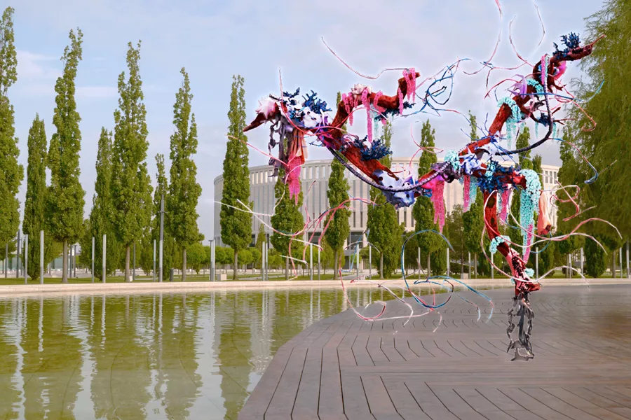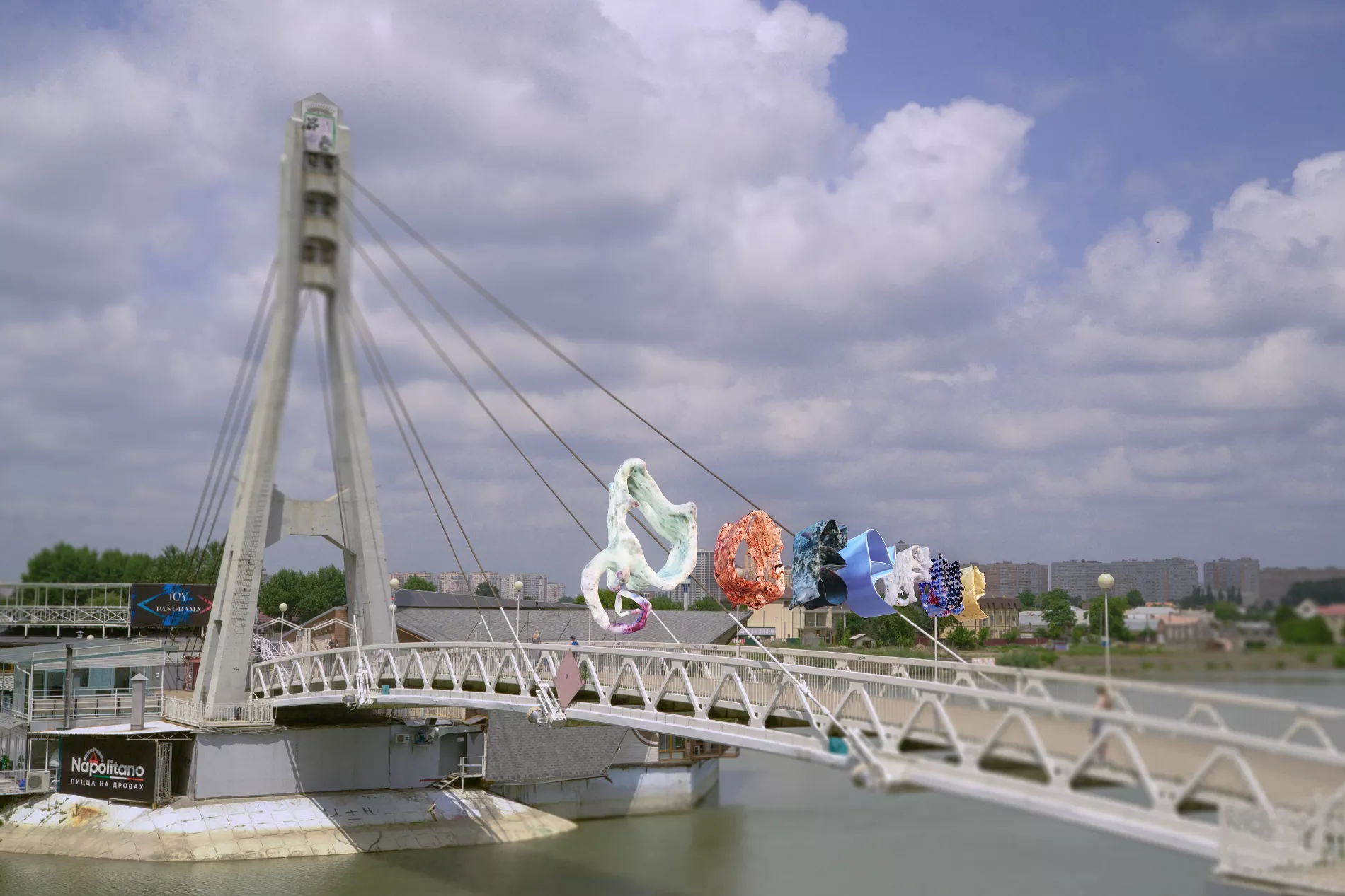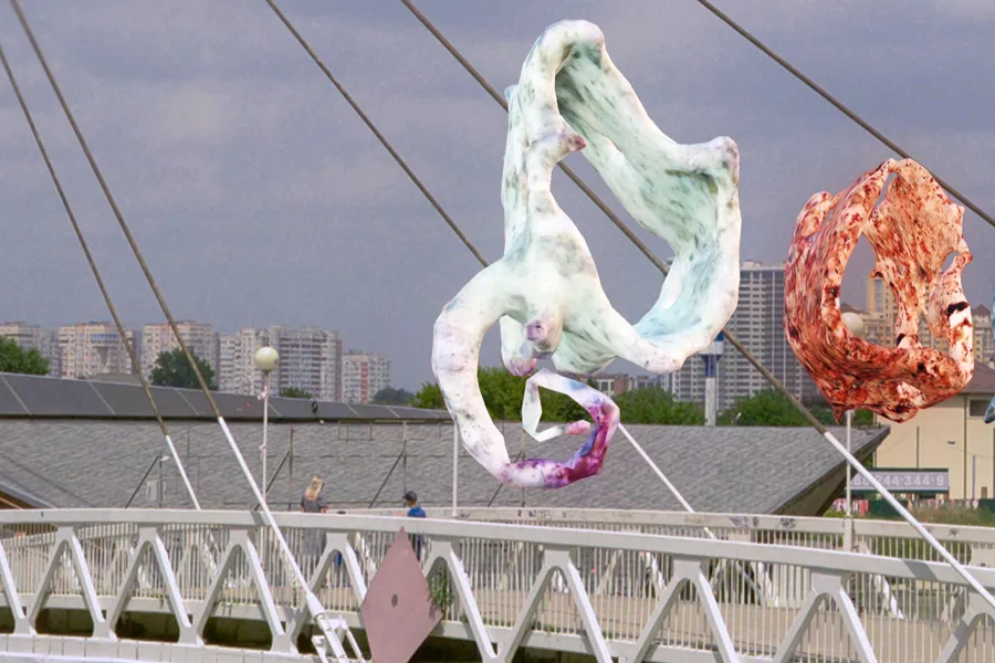 — К сожалению, я всего пару раз была в Краснодаре и недостаточно хорошо знакома с городом. Когда встал вопрос выбора места для работы, местные институции предложили мне несколько подходящих точек и я начала исследовать город с помощью Google Maps. Вышла на набережную, где меня очень удивило то, насколько она (набережная) похожа на рендер, как будто это архитектурный проект, зафотошопленный в городской ландшафт. Видимо, свой след в это внесла архитектура двухтысячных, если я не ошибаюсь. Мне показалось это интересным, особенно в контексте работы, — там есть такой архитектурный сбой, что ли, и в моей работе зритель как бы оказывается внутри сгустков информационной пыльцы, следе, который оставляют цифровые устройства. Думаю, это архитектурно странное и тем притягательное место, между чем-то природным и архитектурой, которая как будто слилась из монитора компьютера, показалось мне интересным для внедрения AR.