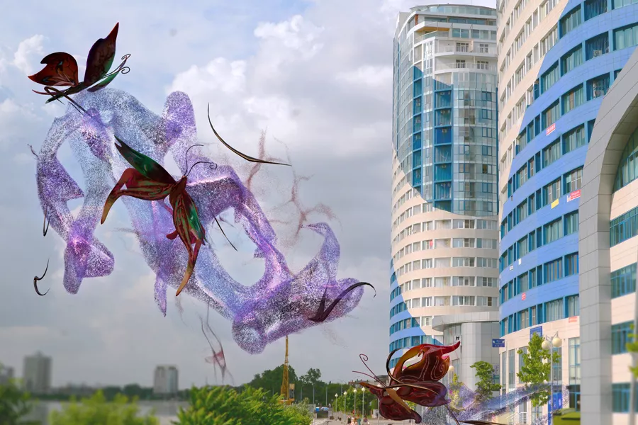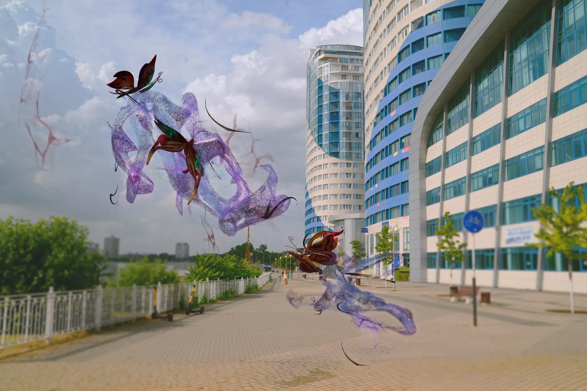 Художники из разных городов создали свои концептуальные объекты, которые воплощены в цифровом виде и привязаны к определенной геолокации. Это еще один аспект рассуждений о будущем, в котором мы все хотели бы уменьшить количество мусора и углеродный след, снизить нагрузку на окружающую среду и сохранить для себя красивое пространство и чистый воздух. Такое — нематериальное — искусство имеет даже больший визуальный потенциал, так как не ограничено рамками материалов и законов физики. Возможности для воплощения идей становятся поистине безграничными. А для того, чтобы любоваться таким объектом, нужен только смартфон с доступом в интернет.
