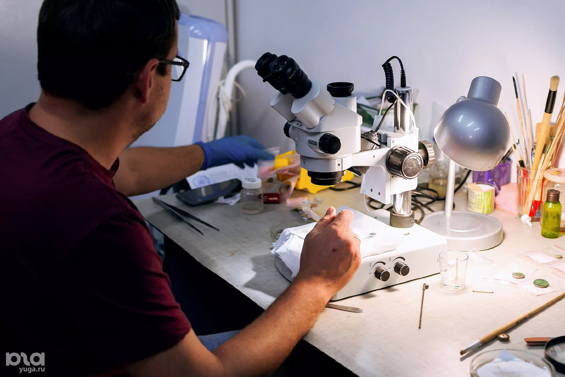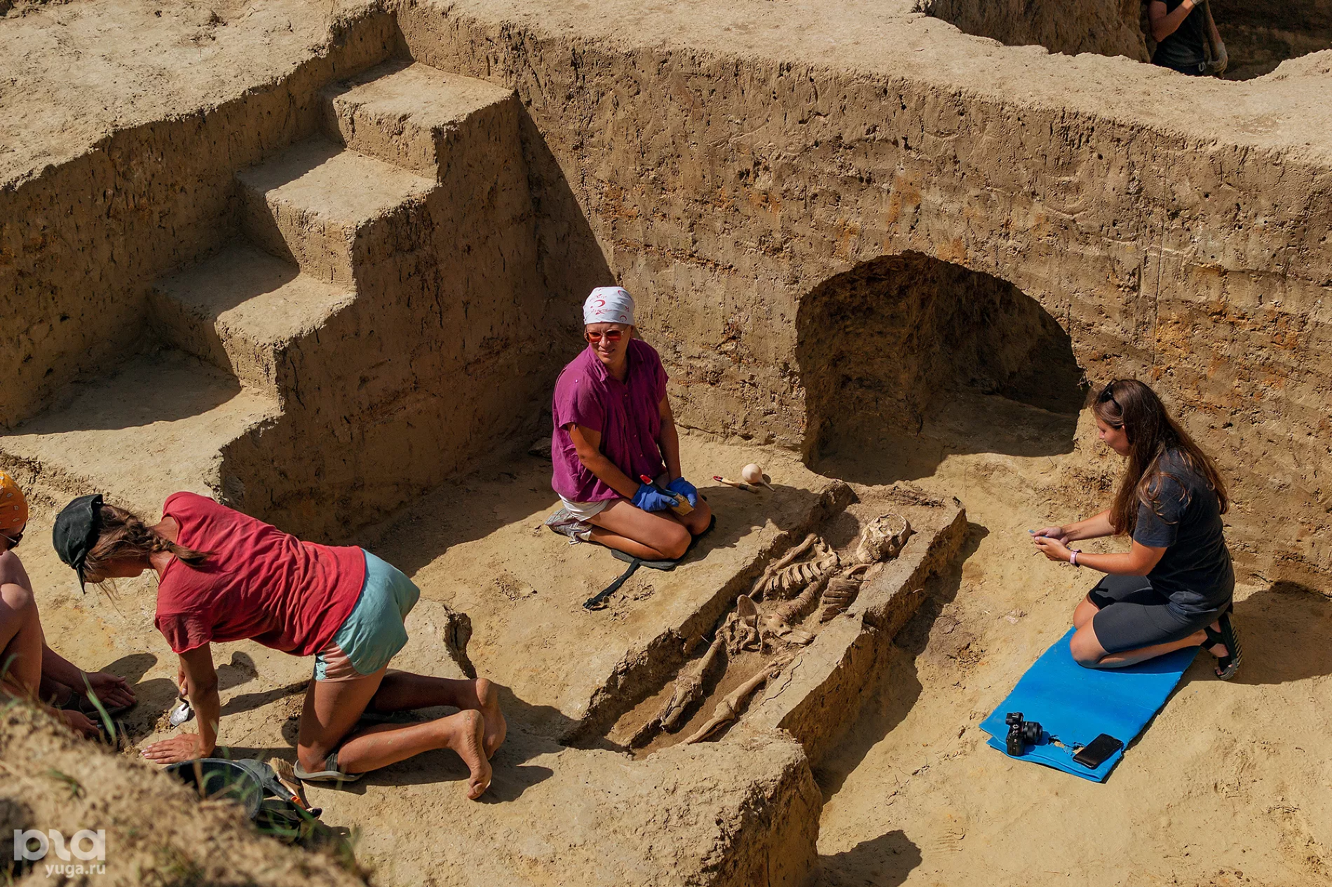 Слова о профессионализме Кузнецов иллюстрирует экскурсией по действующим раскопам, знакомя с нюансами работы. По пути он вспоминает, как корреспондент краснодарского ТВ спрашивал у горожан, что такое археология, и те говорили: «Не совсем нормальные люди, грязные, машут лопатами, ищут клады». Это больше похоже на черных копателей. Ученый улыбается: ему хочется, чтобы ассоциации не ограничивались брутальностью полевых исследований. Историк не отрицает их необходимости, ведь они дают первичный материал — без него специалистам вспомогательных исторических дисциплин просто нечего было б изучать.