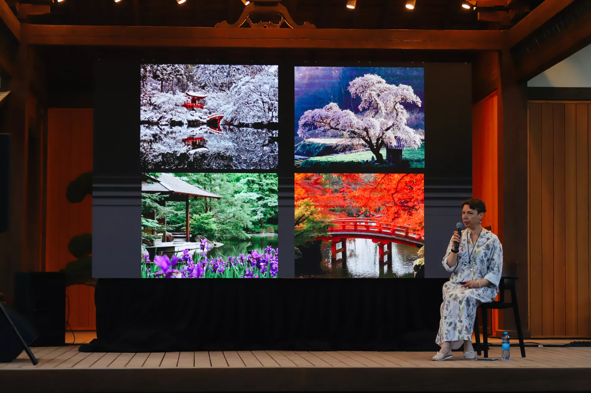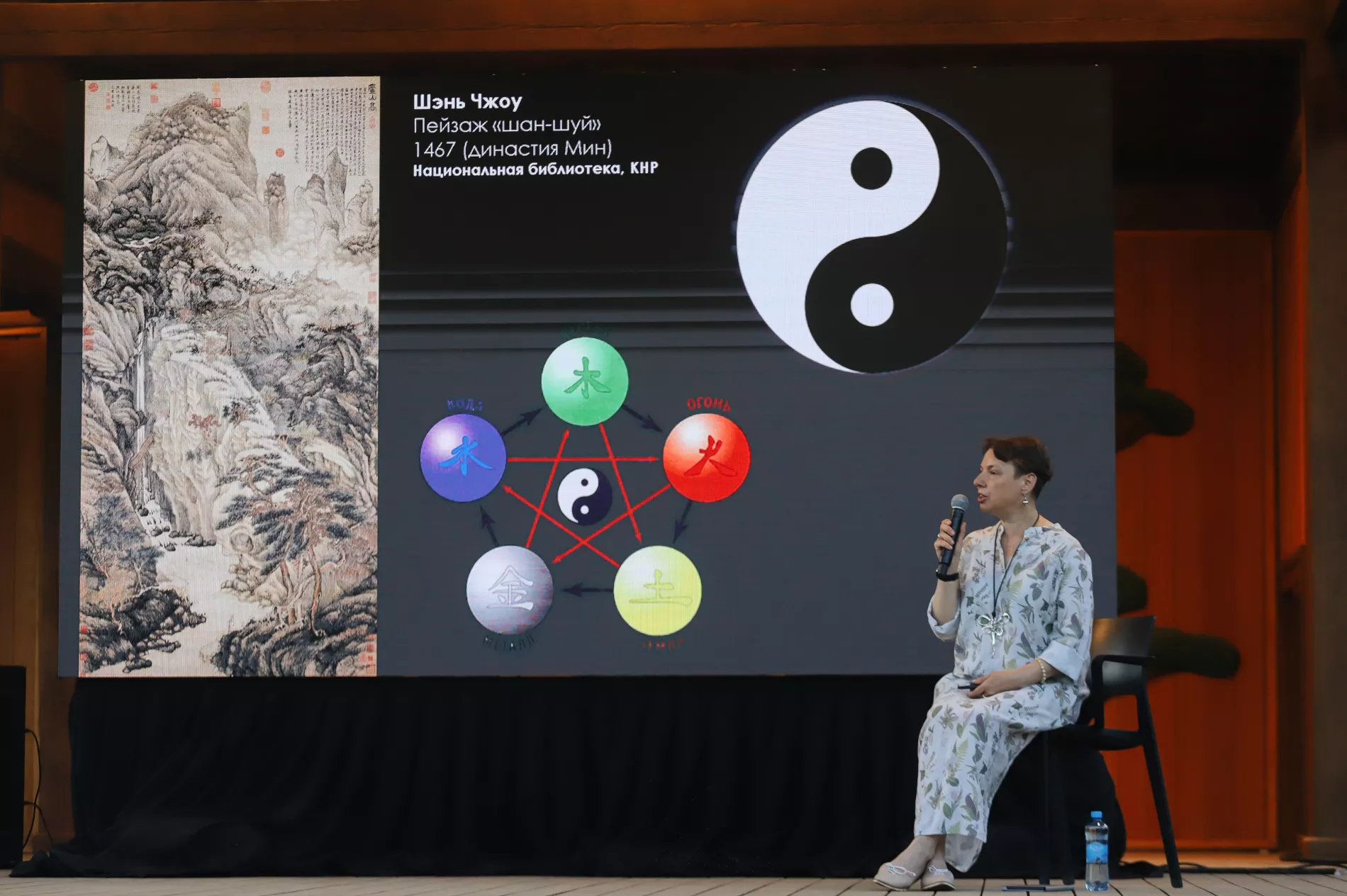 Перед слушателями выступила японист Анна Егорова — старший научный сотрудник и заведующая отделом искусства народов Дальнего Востока, Юго-Восточной Азии и Океании Государственного музея Востока (Москва), куратор и автор ряда каталогов выставок японского искусства в Эрмитаже.