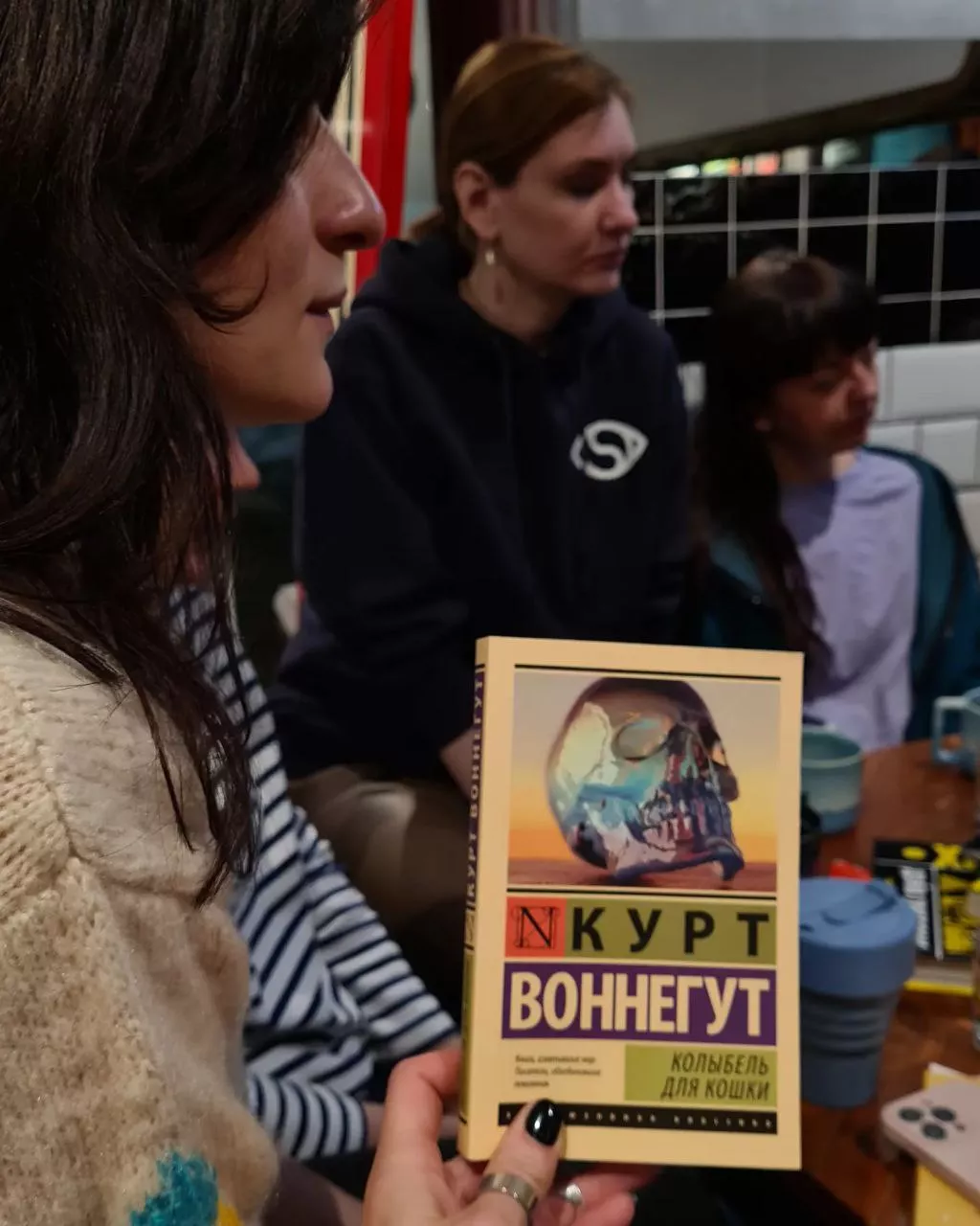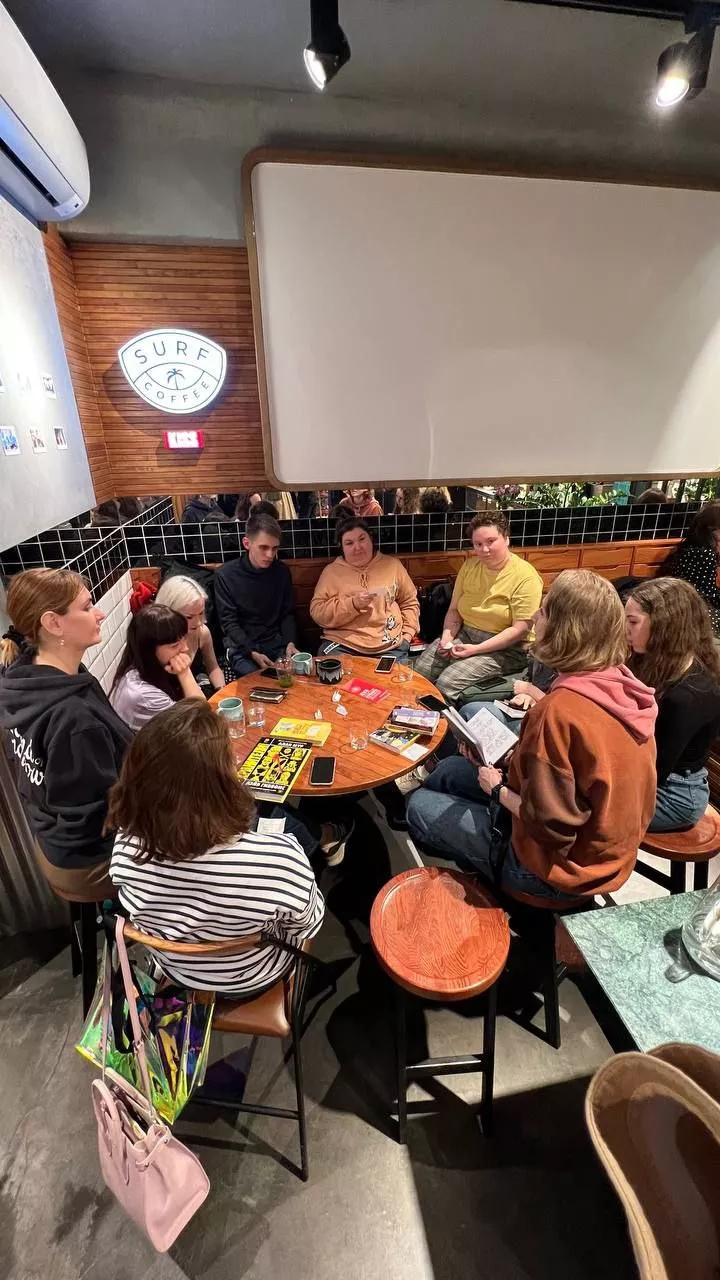 Второй — книжный клуб «Сёрфа». Это совместный проект с кофейней «Surf Coffee x Aurore». Татьяна и Дарья с первым клубом часто там организовывали встречи, после чего руководство заведения предложило им создать совместное книжное сообщество. Этот клуб открытый и платный — 200 рублей. Записаться можно в соцсетях кофейни.