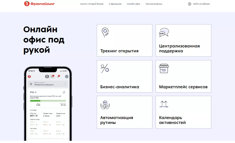 «Пятёрочка» обновила цифровую платформу для партнеров, открывающих магазины по франшизе. Теперь помимо общей информации, ответов на вопросы и расчета затрат на открытие сайт предоставляет каждому пользователю рабочее пространство со всеми необходимыми функциями для управления магазином.