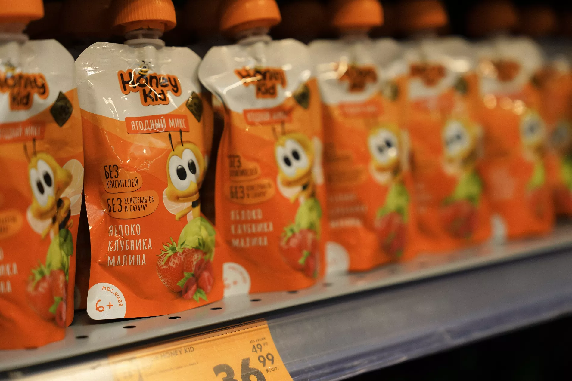 На полках супермаркетов по всей России пюре из станицы Старовеличковской продается под самыми популярными брендами детского питания. С 2024-го завод выпускает продукцию и для «Пятёрочки» — ежемесячно предприятие изготавливает для магазинов сети около 700 тысяч паучей под эксклюзивной торговой маркой (ЭТМ) HoneyKid, спрос на которую за последний год вырос на 89%.