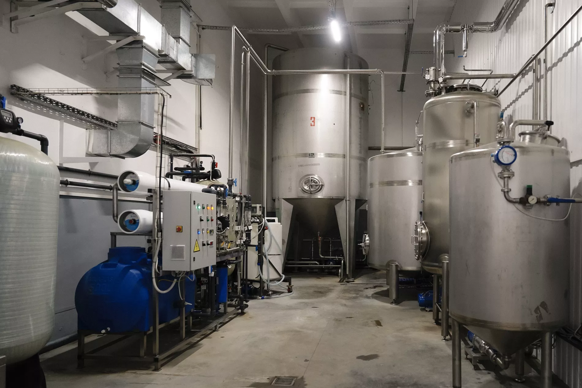 Наша экскурсия, как и само производство, начинается с воды. Завод добывает ее из собственной артезианской скважины и очищает трижды: удаляет соли жесткости, пропускает через угольный фильтр и ультрафиолетовую лампу.