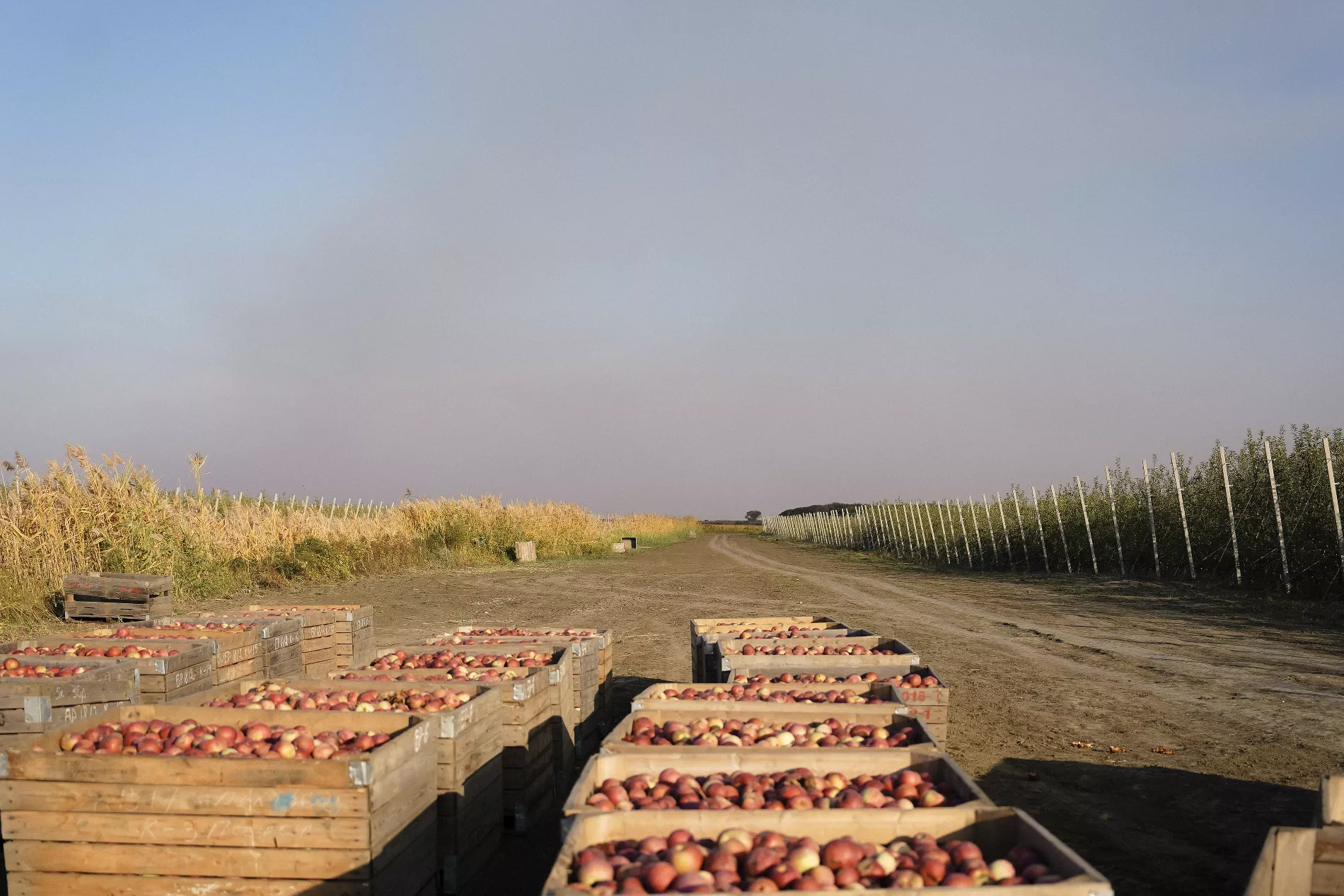 Один из поставщиков завода разбил в соседней станице Старонижестеблиевской яблоневый сад площадью 300 га — это больше 400 футбольных полей или примерно 13 парков «Краснодар». С одного гектара здесь собирают примерно 35 тонн яблок разных сортов: от сладкой «Галы» среднего размера до «пинк леди», едва умещающейся в ладонь. Последние убирают в ноябре, так что мы застали сад во всей красе.
