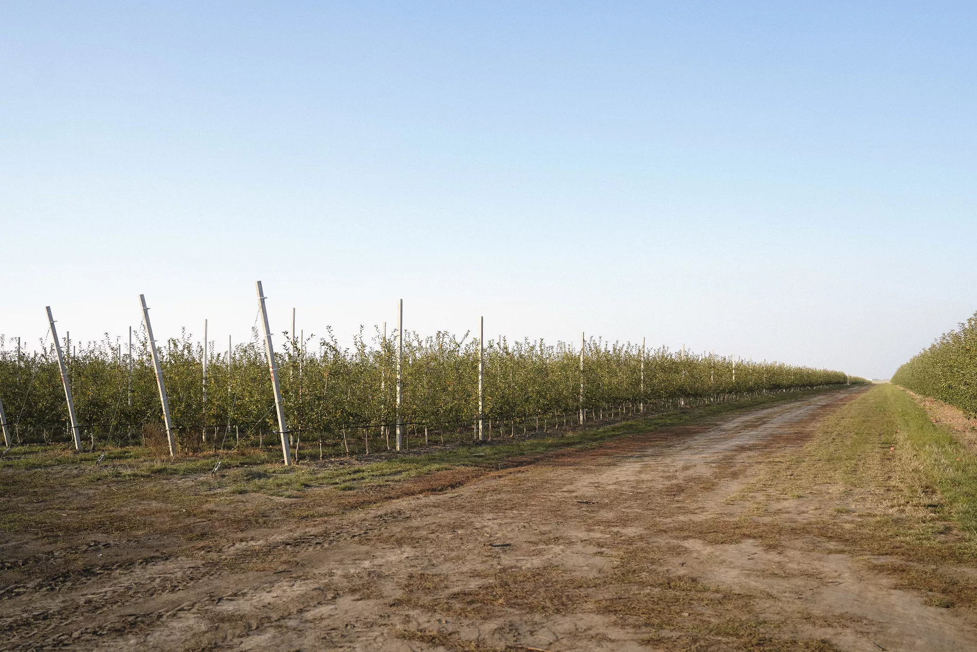 Яблоневые сады здесь заложили еще в 80-х и место выбрали неслучайно: это самая высокая точка населенного пункта, где не задерживаются осадки. Сегодняшний сад — молодой. Каждое деревце растили в питомнике и прививали агрономы хозяйства.