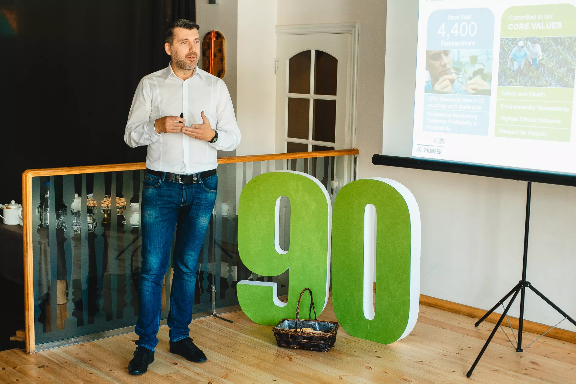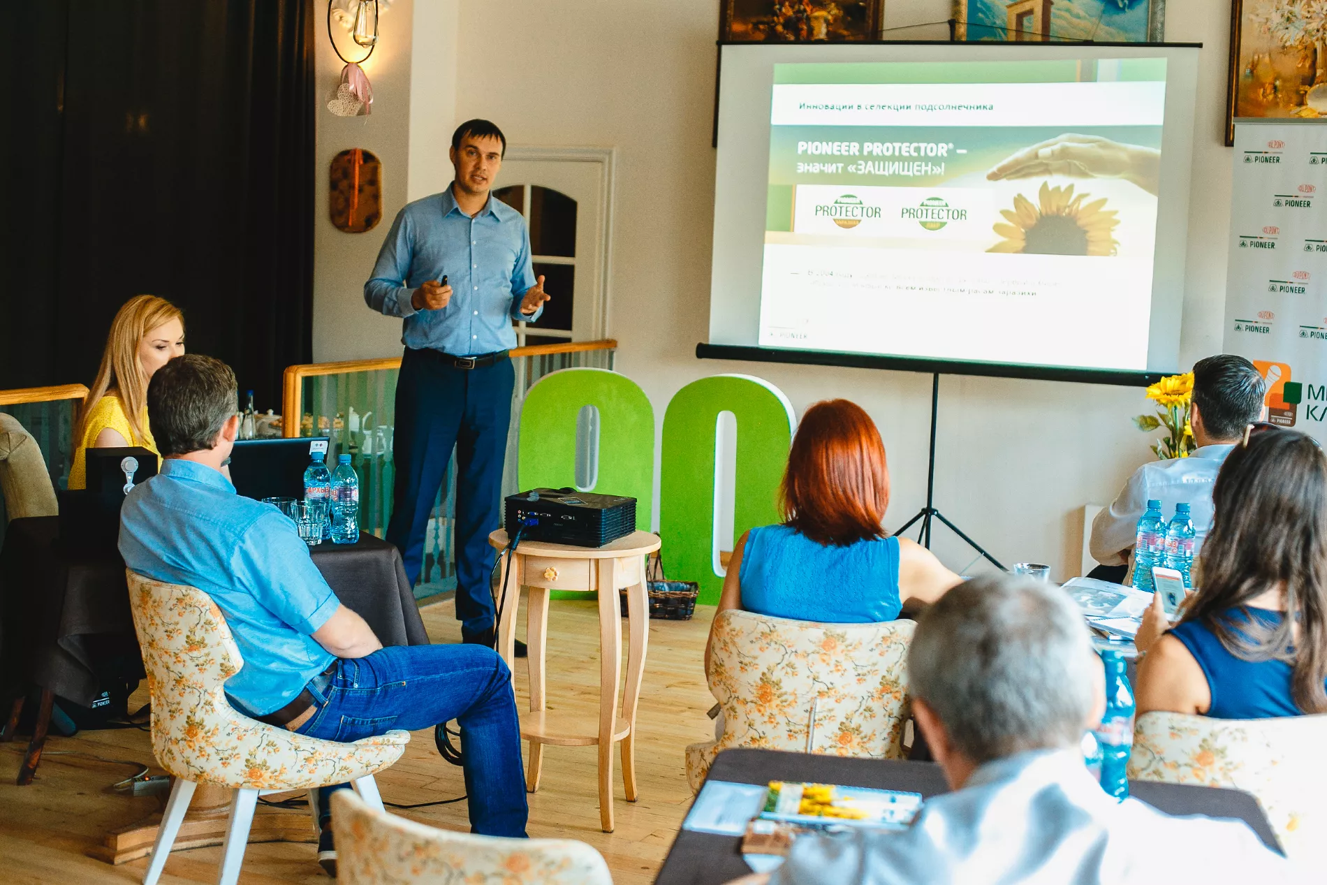 Выступление менеджера по коммуникациям DuPont Pioneer в Европе Йожефа Мате было посвящено истории создания компании, ее миссии и месту на сельскохозяйственном рынке. Компания добивается создания качественных здоровых продуктов на основе постоянных полевых исследований во всех пригодных для земледелия климатических зонах в разных уголках планеты. Генеральный директор DuPont Pioneer в России Александр Козачков назвал Краснодарский край наилучшим местом в России для выращивания подсолнечника и кукурузы, а значит — стратегическим регионом для компании. Он рассказал о российском бизнесе DuPont Pioneer и о сложившихся здесь на сегодняшний день трендах по основным направлениям деятельности компании. Так, площади посевов кукурузы и подсолнечника в России растут, хотя темпы роста могут немного отставать от мировых. Существует ряд сдерживающих факторов, в первую очередь это инвестиции.