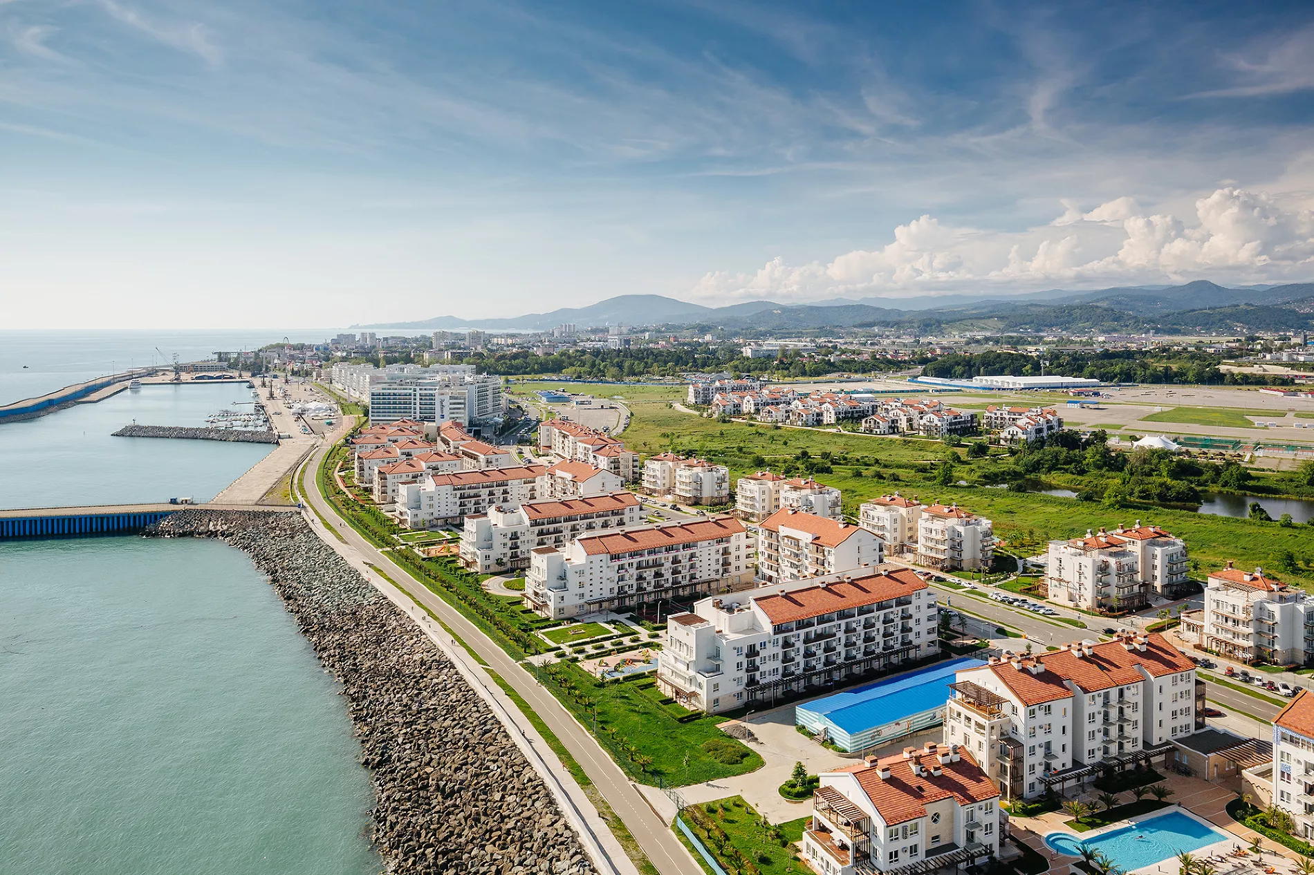 Помимо выгодного местоположения — рядом с Олимпийским парком, в 10 минутах от аэропорта и в 30 от Красной Поляны, — в активе «Имеретинского» еще и прекрасная инфраструктура. Всего за три года фактически с нуля было создано пространство автономного курортного города, в котором есть все необходимое не только для отдыха, но и для постоянной жизни. Кроме благоустроенных пляжей с белым песком, в «Имеретинском» есть собственные спортивные и рекреационные объекты, яхтенный порт, образовательные и медицинские учреждения.