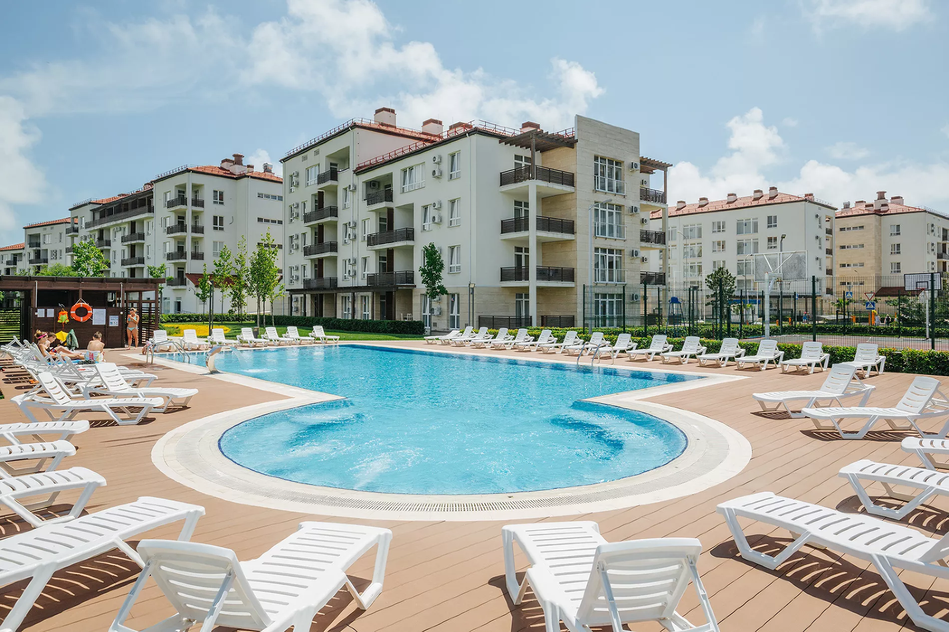 — 4 квартала апартаментов: Морской, Парковый, Прибрежный и Заповедный;