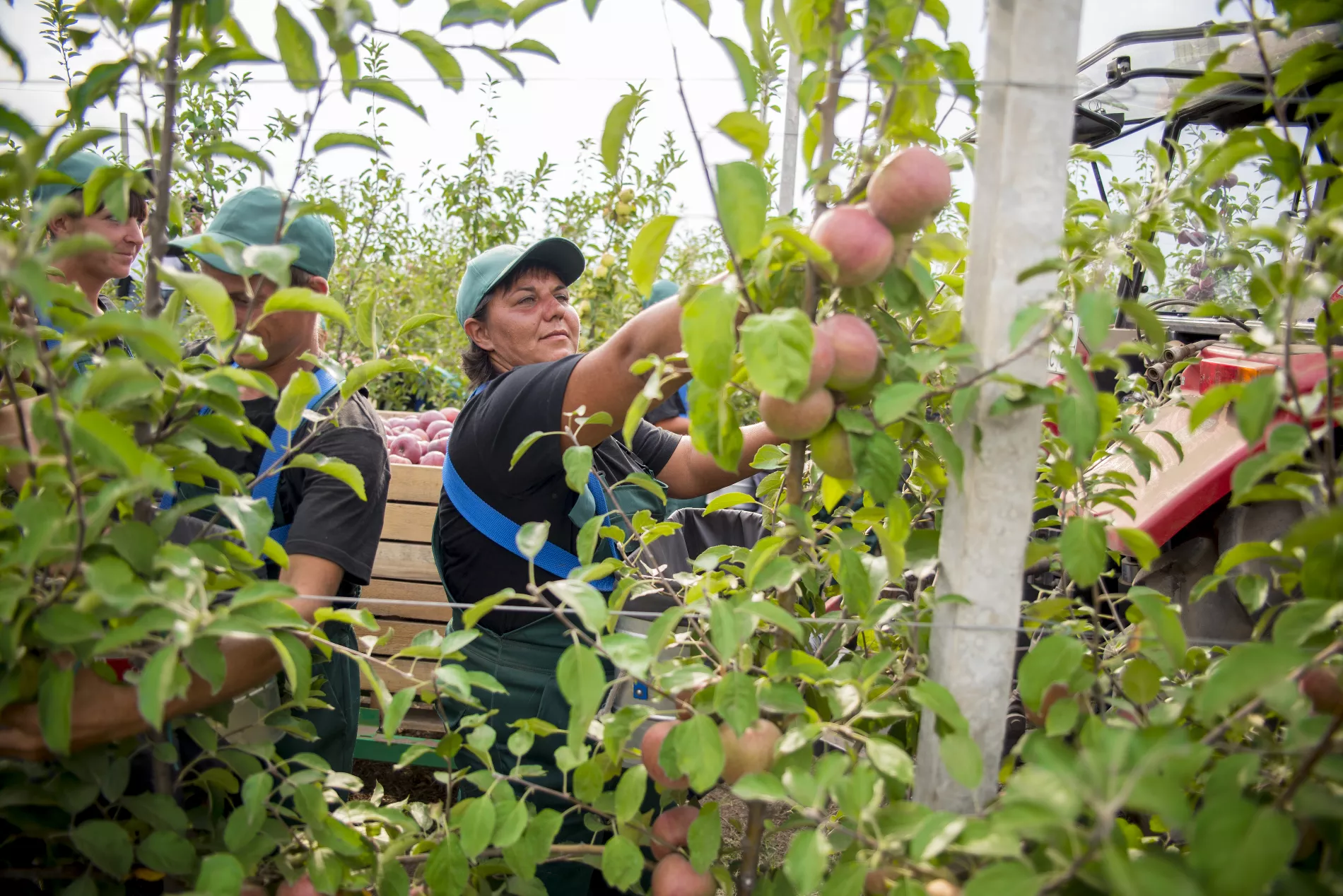 «Пока еще не придумано механизированного способа собирать урожай столовых яблок. Да, существуют специальные машины, но они только для технических сортов. Нам же важно сохранить яблоко в целостности, чтобы шкурка не потерлась, не повредилась, не поцарапалась. Если яблоко упало на землю — все, оно уже не годится для продажи», — комментирует сбор урожая главный агроном AXIS Agro Виктор Храпов.