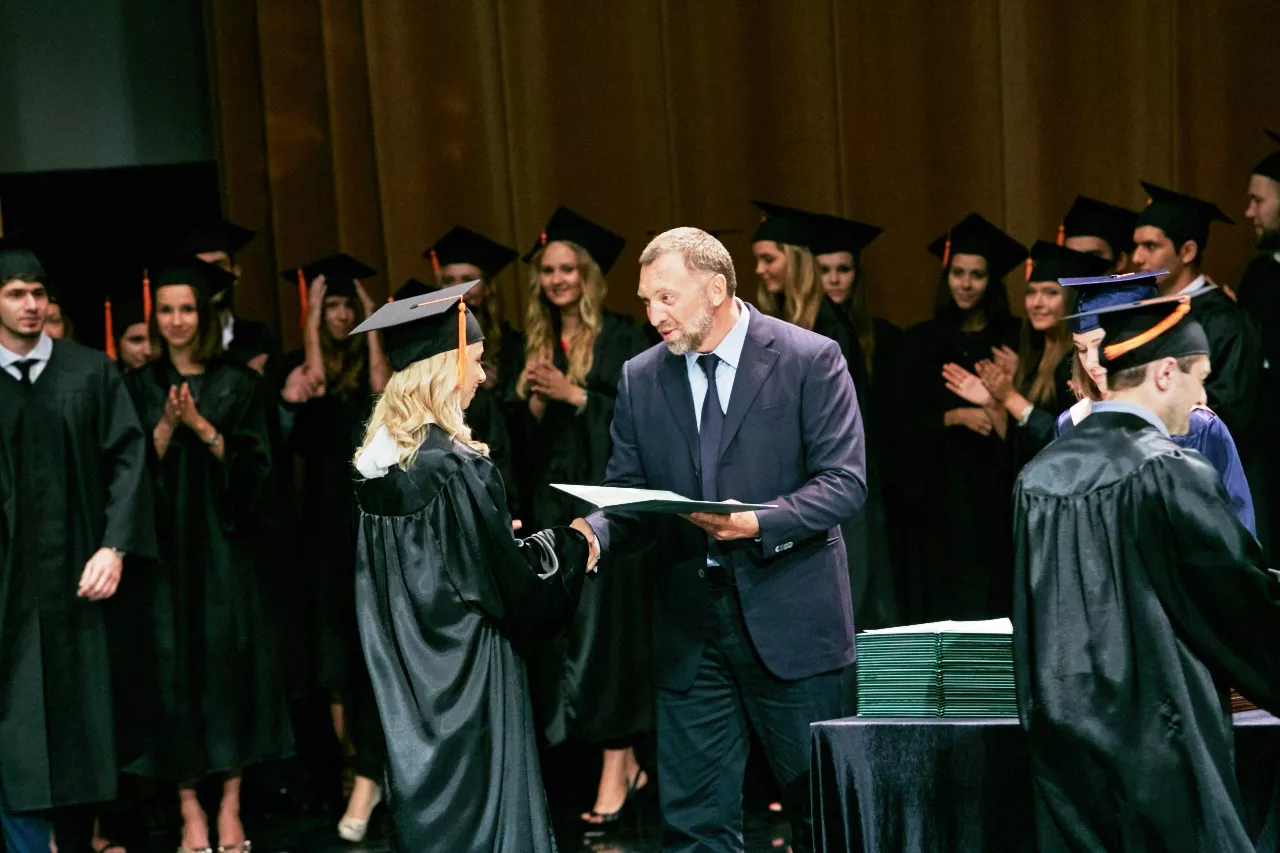 16. В 1993 году Олег Дерипаска закончил кафедру квантовой статистики и теории поля физического факультета МГУ им. М.В. Ломоносова с красным дипломом. Учеба прерывалась на два года из-за службы в ракетных частях под Иркутском. Дерипаска не стал идти по пути научной деятельности, потому что, по его словам, после распада СССР в стране не финансировалась деятельность молодых ученых.