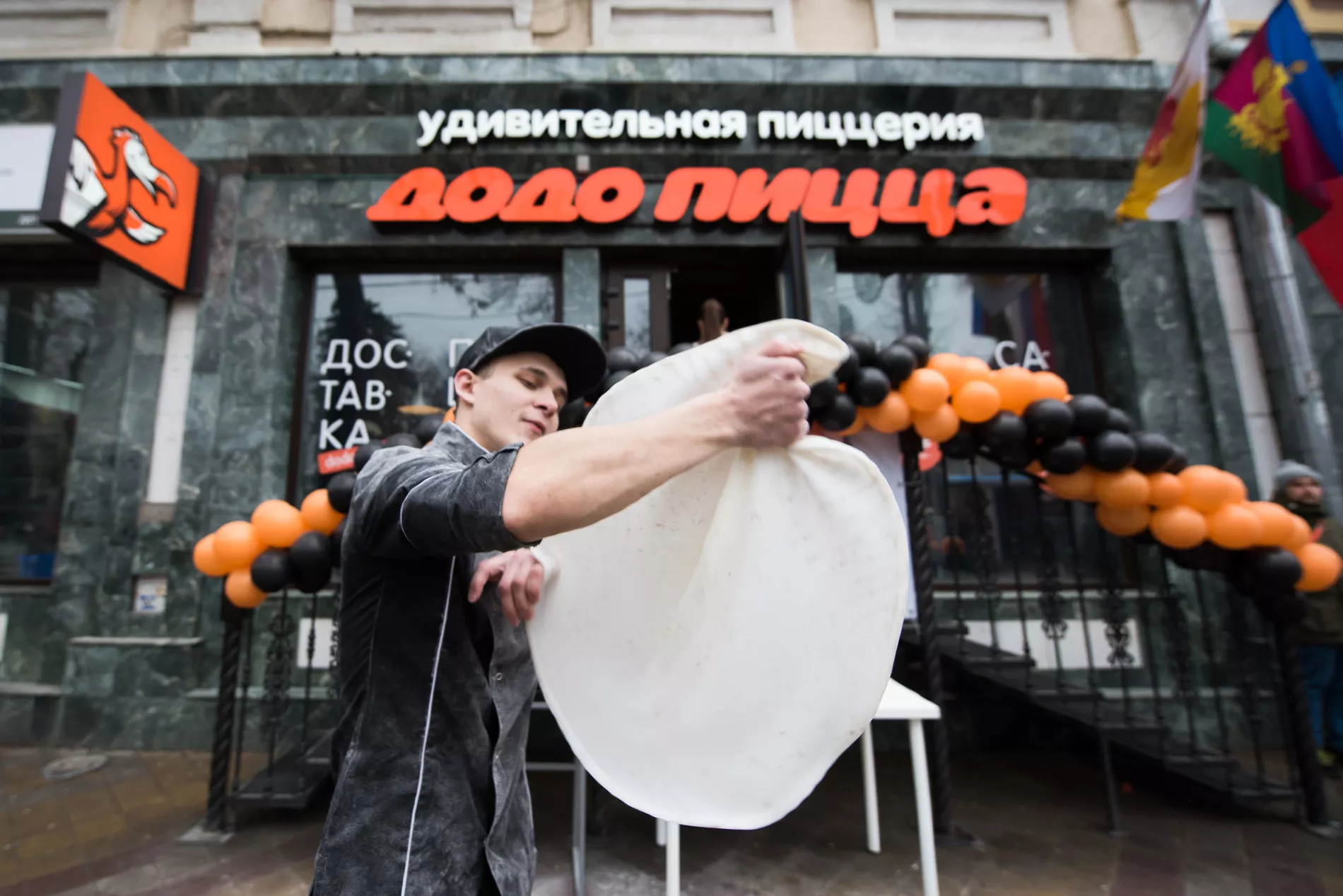 24 марта в центре Краснодара можно было наблюдать очередь длиной в полквартала. Начиналась она от «Додо Пиццы» на Красной, где в этот день вместе с командой заведения пиццу готовил основатель и главный исполнительный директор сети Федор Овчинников (и стоила она в честь акции 95 рублей).