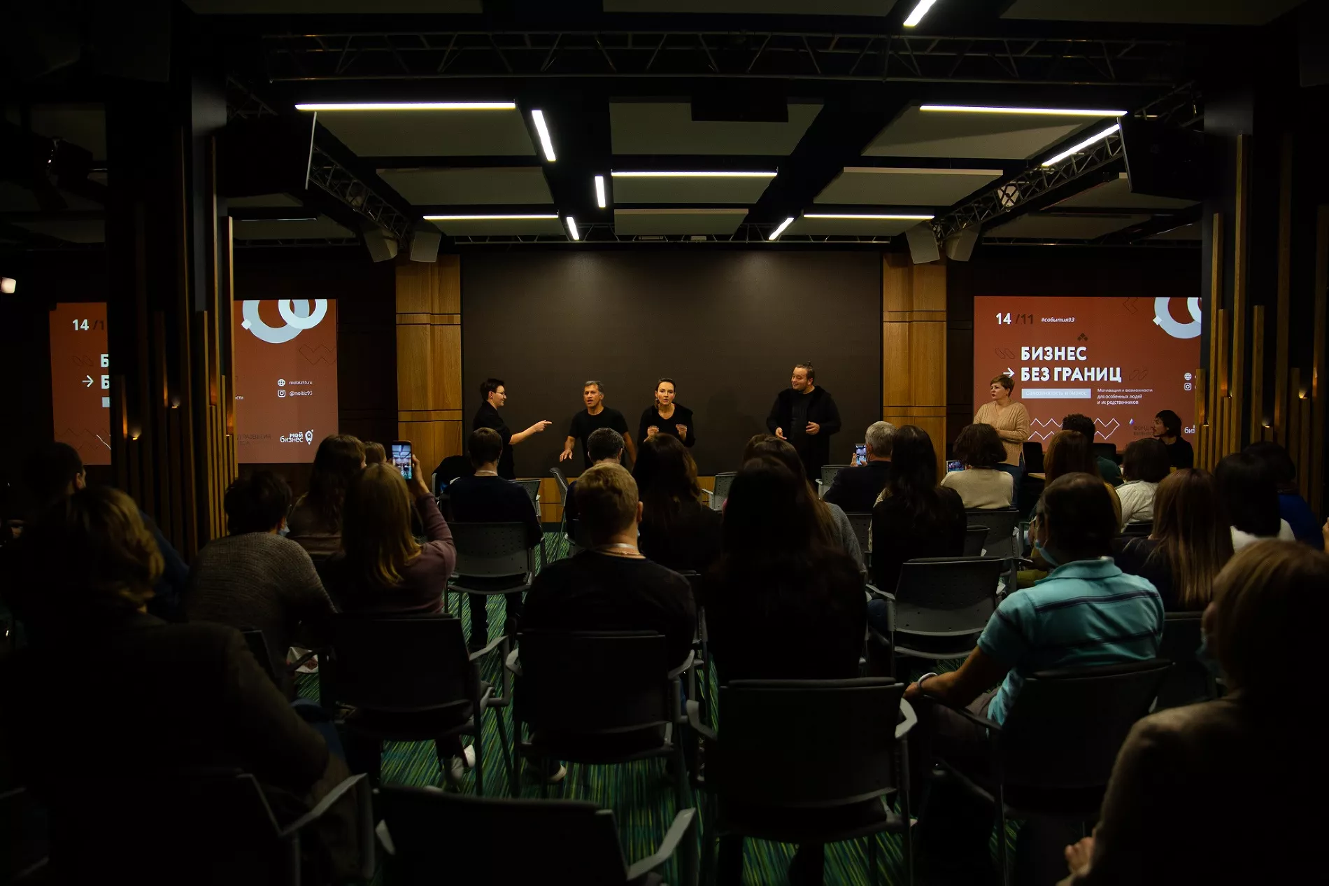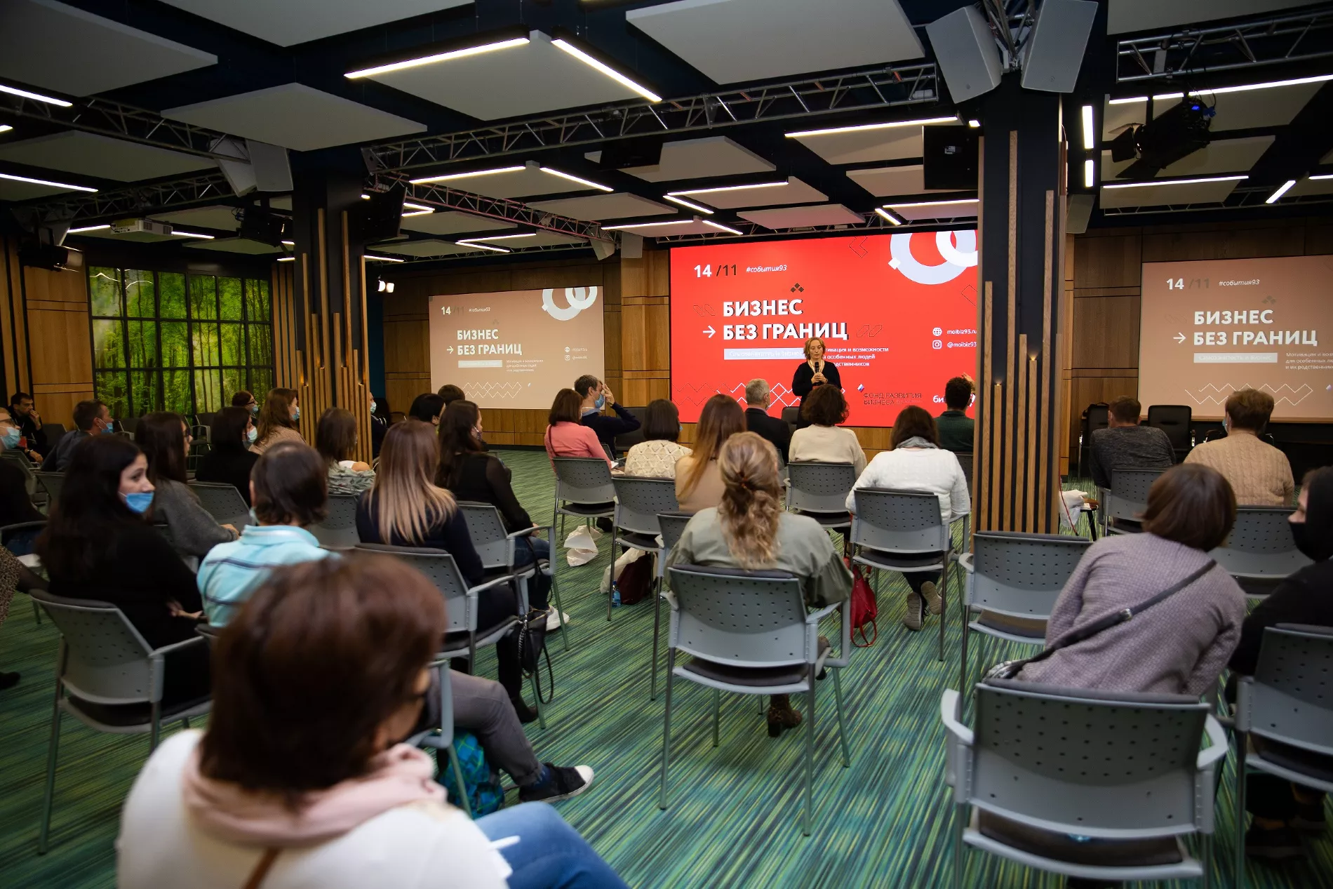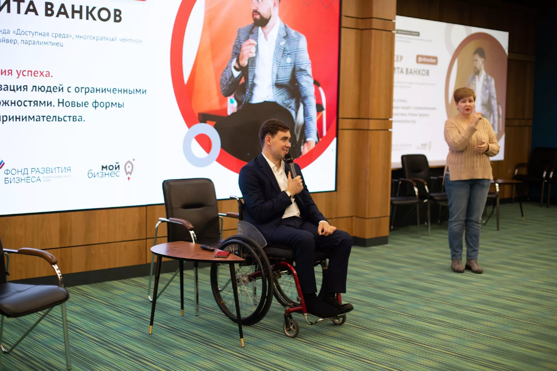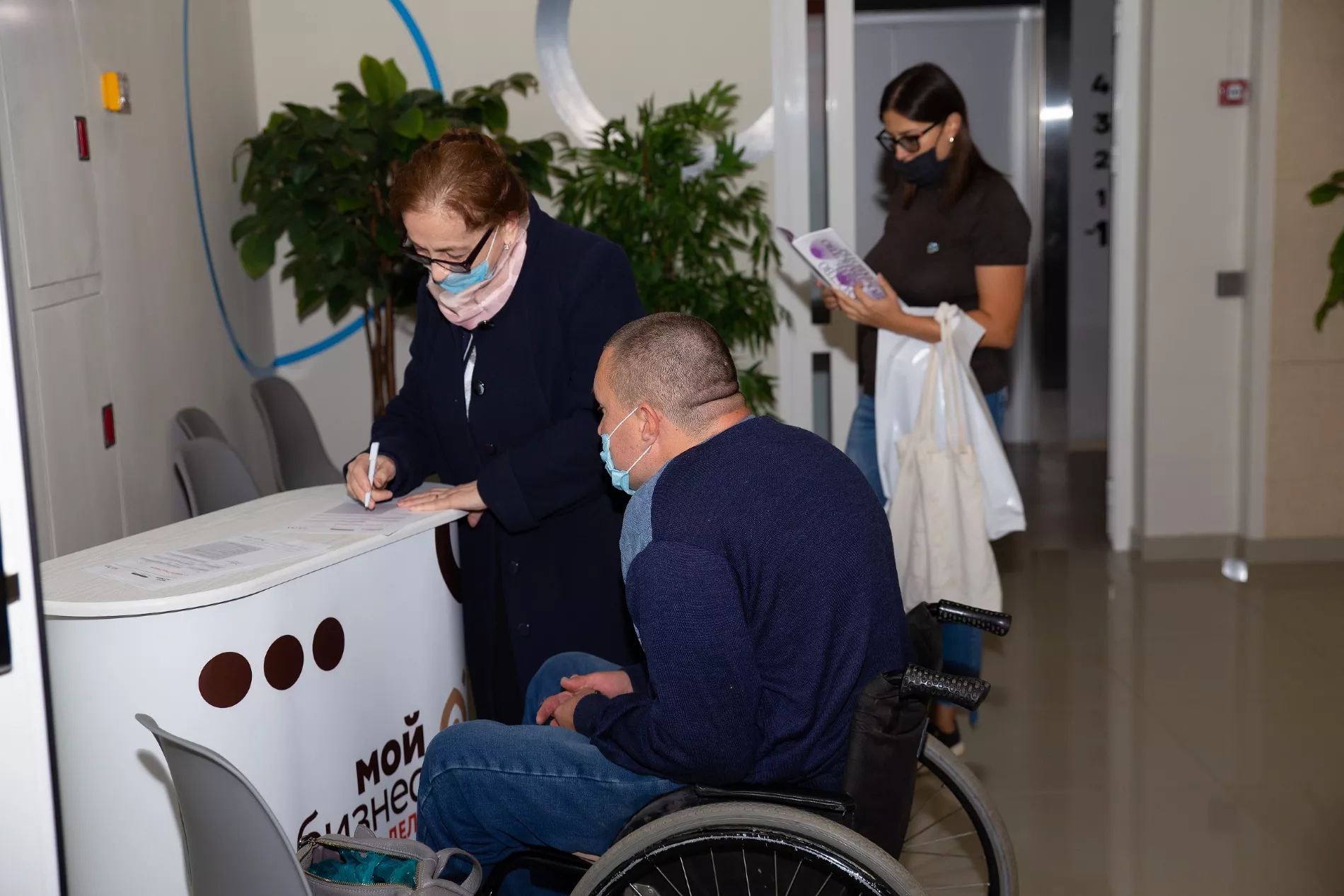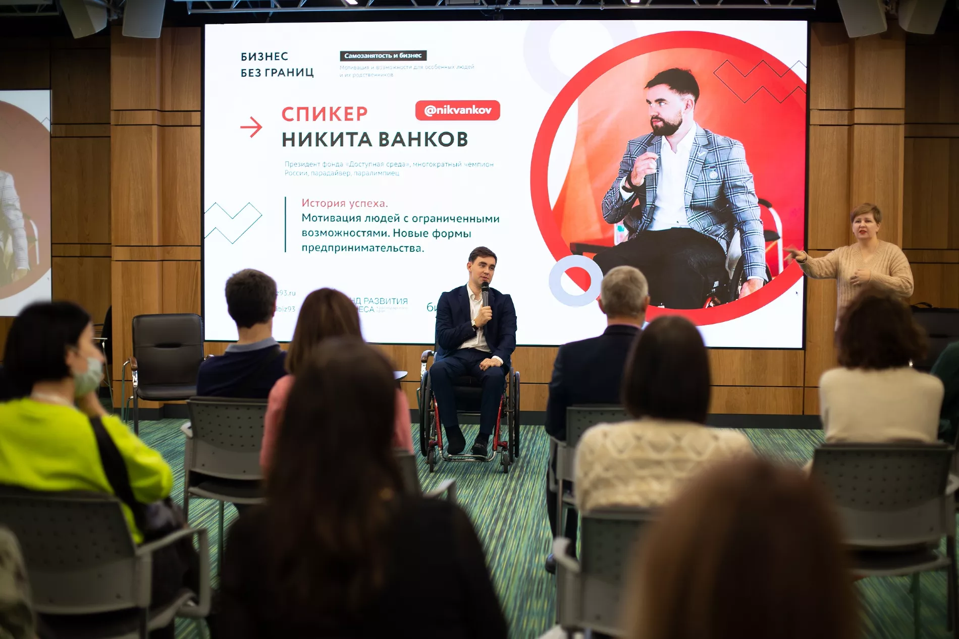 Такое мероприятие — конференция «Бизнес без границ» — состоялось в ноябре 2020-го. Участниками стали 60 человек, еще 460 зрителей присоединились к онлайн-трансляции в аккаунте регионального проекта «Мой бизнес». При подготовке конференции были учтены особенности аудитории: для слабослышащих людей пригласили сурдопереводчиков, для слабовидящих попросили всех спикеров полностью проговаривать во время выступлений свои презентации. Чтобы удобно было и колясочникам, площадкой для конференции выбрали Инновационный центр на Северной, 405 — здесь парковочные места расположены рядом со входом, дверные проемы достаточной ширины, есть пандусы и лифты.