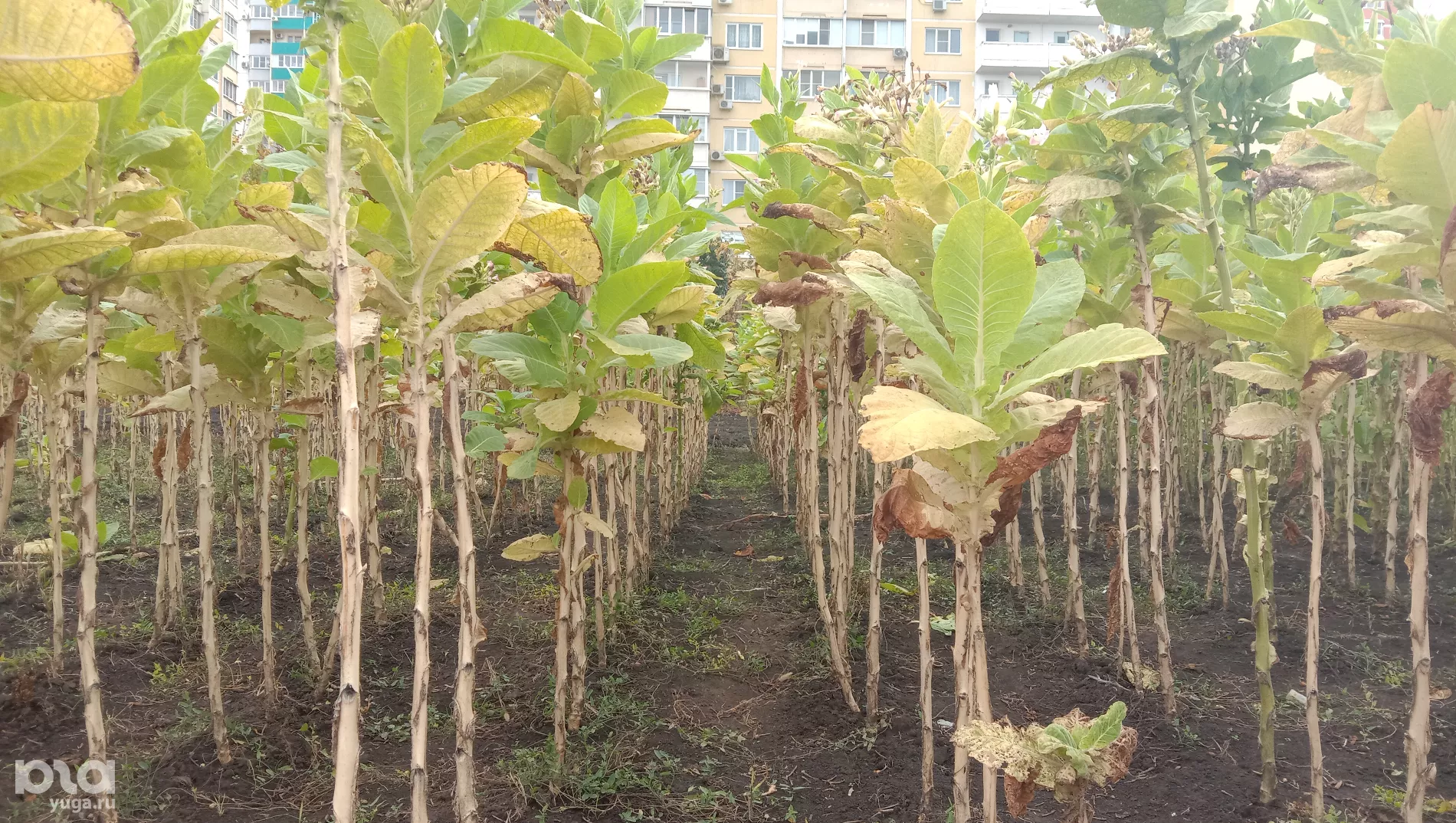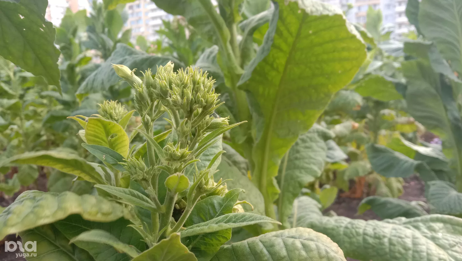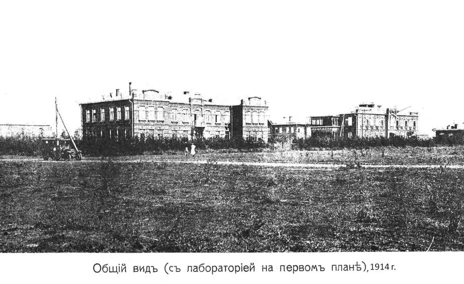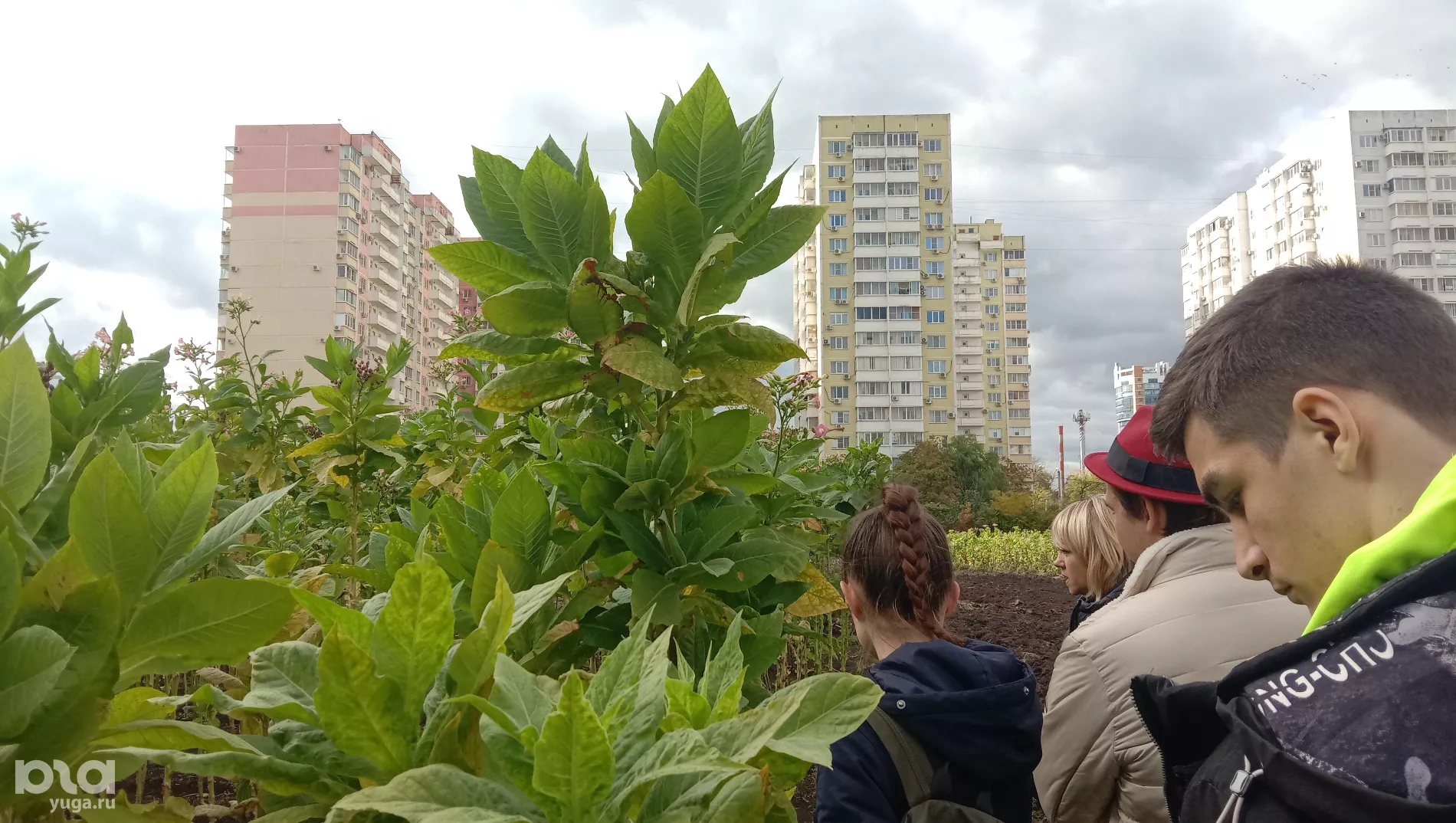 «Это был уже загород, территория на отшибе. Вот эта тропиночка, по которой автомобиль едет — это улица Московская», — замдиректора института табака Евгения Гнучих показывает снимок, сделанный в год основания первой лаборатории, в 1914-м. Теперь комплекс института находится между новостройками и советскими многоэтажками. Над полем буквально нависают окна домов. Автомобильную парковку от высоких стеблей табака отделяет низкий забор.