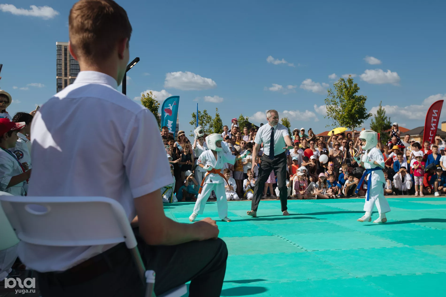 Мероприятие открыл патриотический парад спортивного клуба «Ягуар». После него гостей увлекли яркий флешмоб, выступления гимнасток, показательные соревнования каратистов и танцевальные номера. И дети, и взрослые участвовали в конкурсах и веселых играх с призами от организаторов.