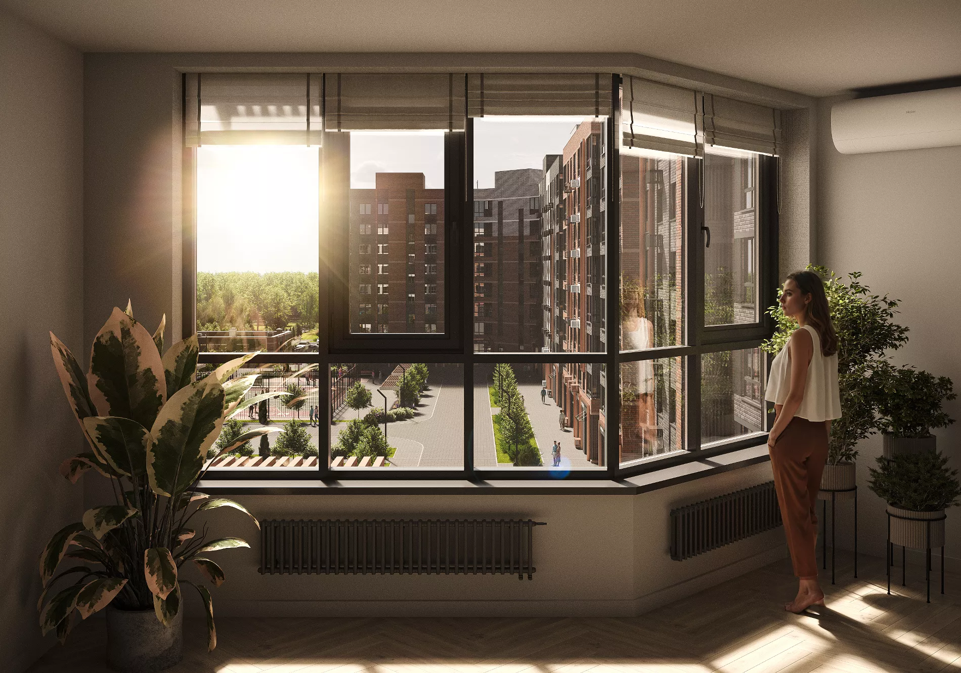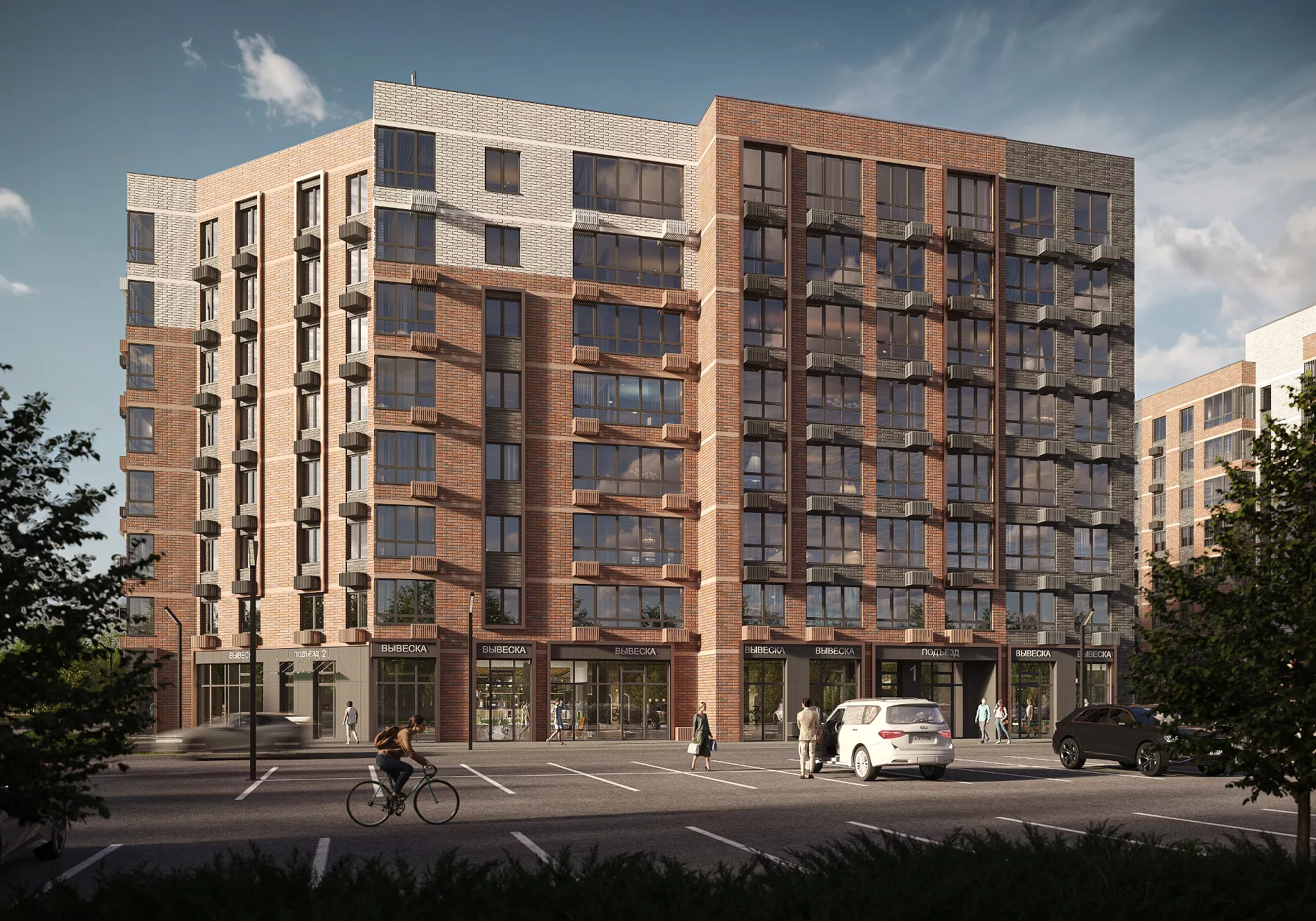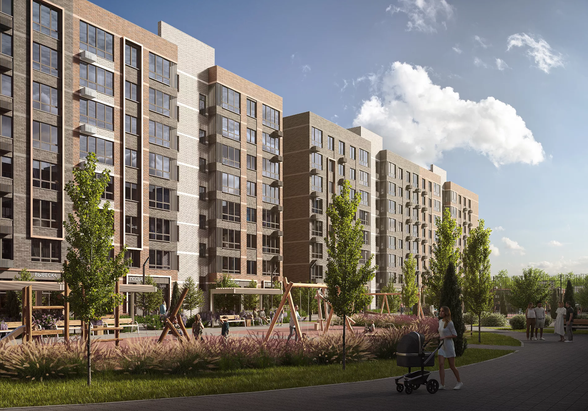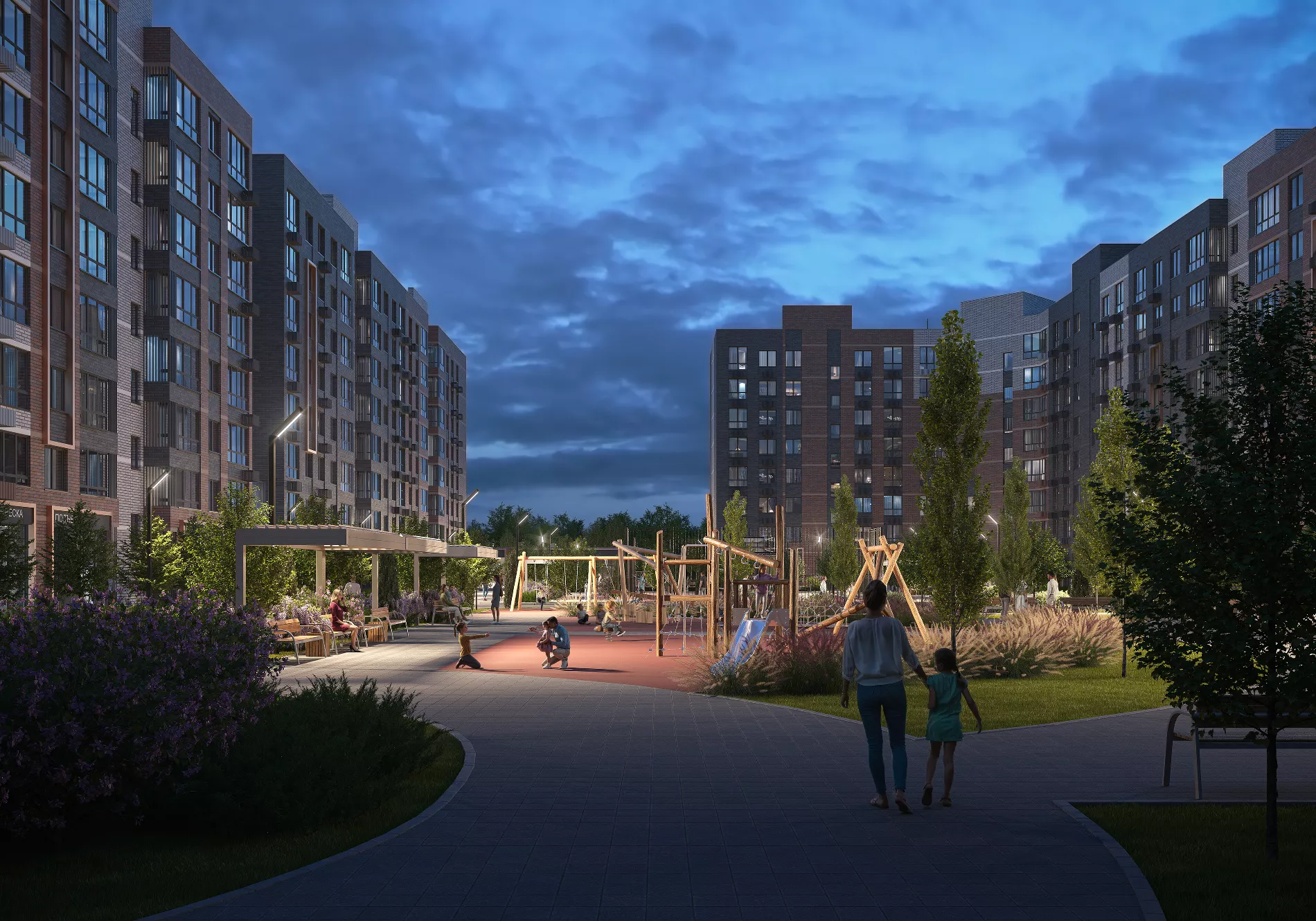 На территории также будет велодорожка длиной почти 800 метров. А если захочется большего простора, в десяти минутах ходьбы — городской парк «Сосновый». Здесь можно гулять с детьми, бегать по утрам или устраивать пикники с друзьями.