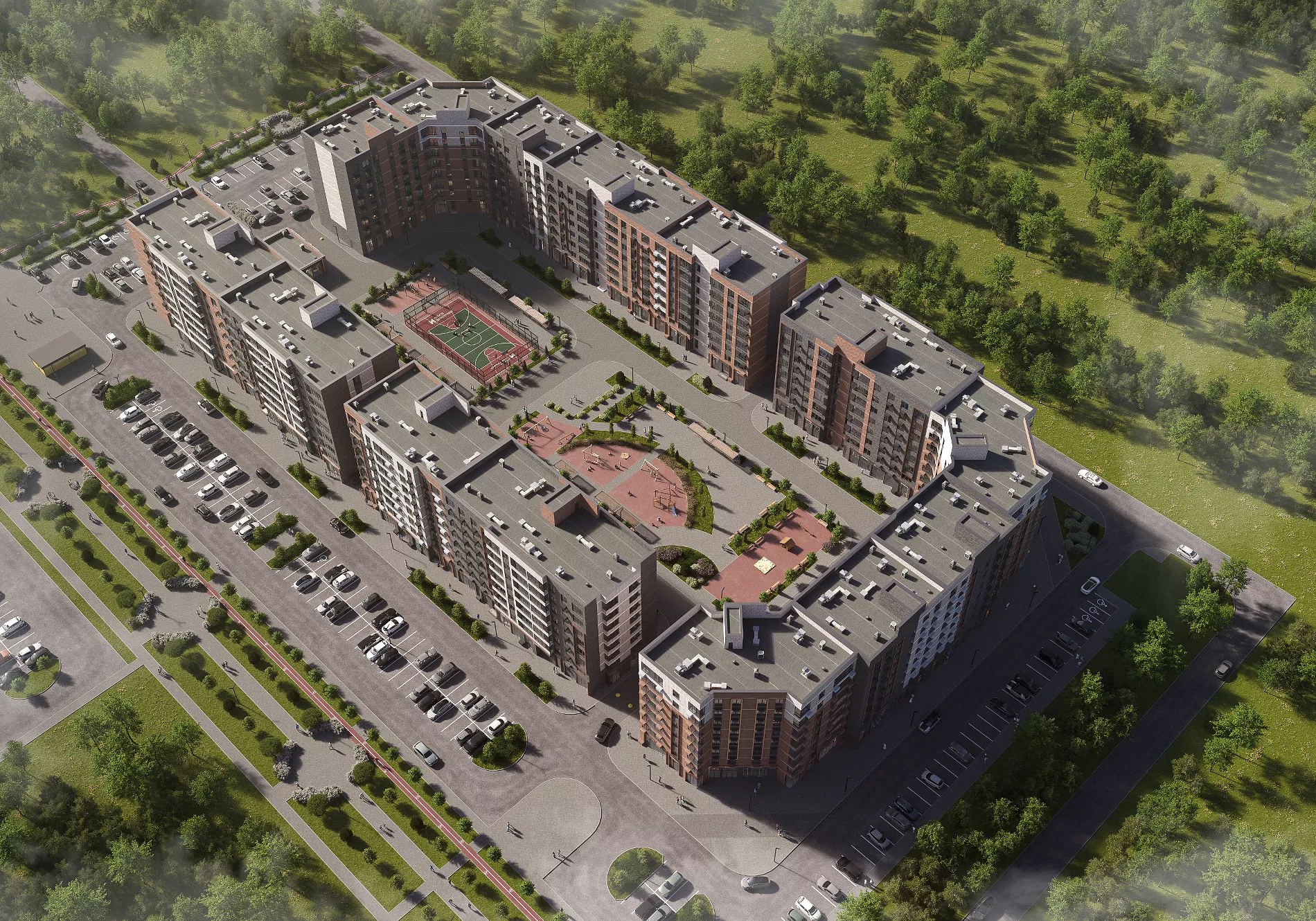 Застройщик решил убрать машины с территории дворов, чтобы пространство стало по-настоящему безопасными. Здесь разместят детские и спортивные площадки, зоны отдыха с теневыми навесами.