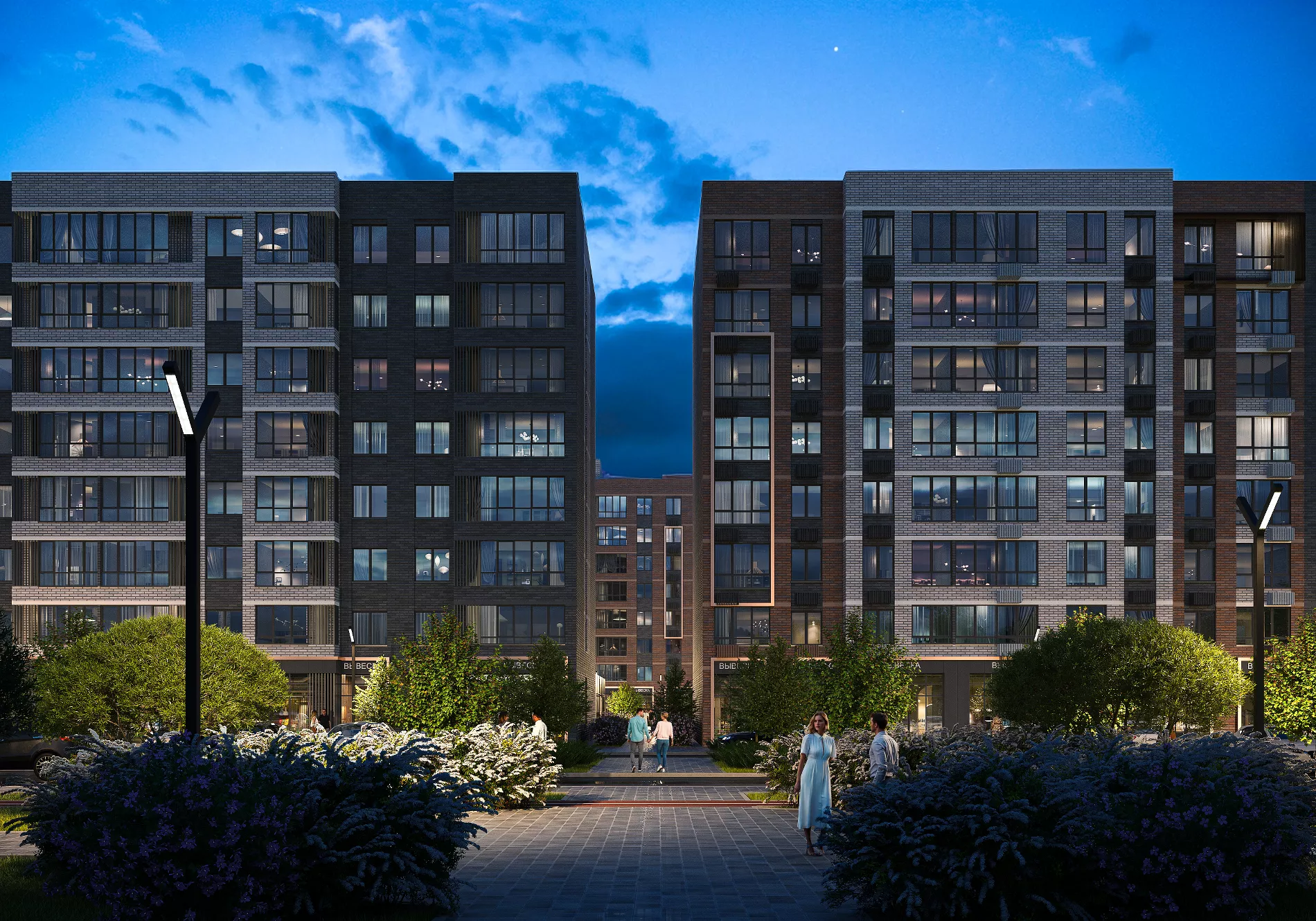 Внутри комплекса появится собственный сквер с аллеями для неспешных прогулок, лавочками и зелёными уголками.