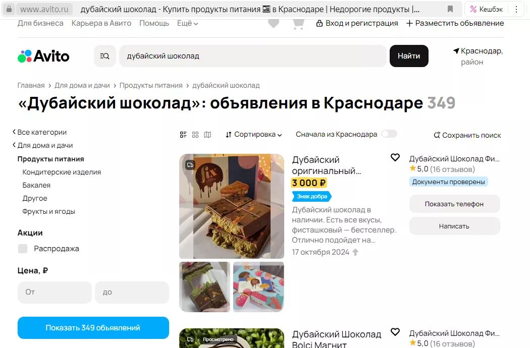 Дубайский шоколад в Краснодаре: где купить оригинальную и недорогую версии вирусной сладости