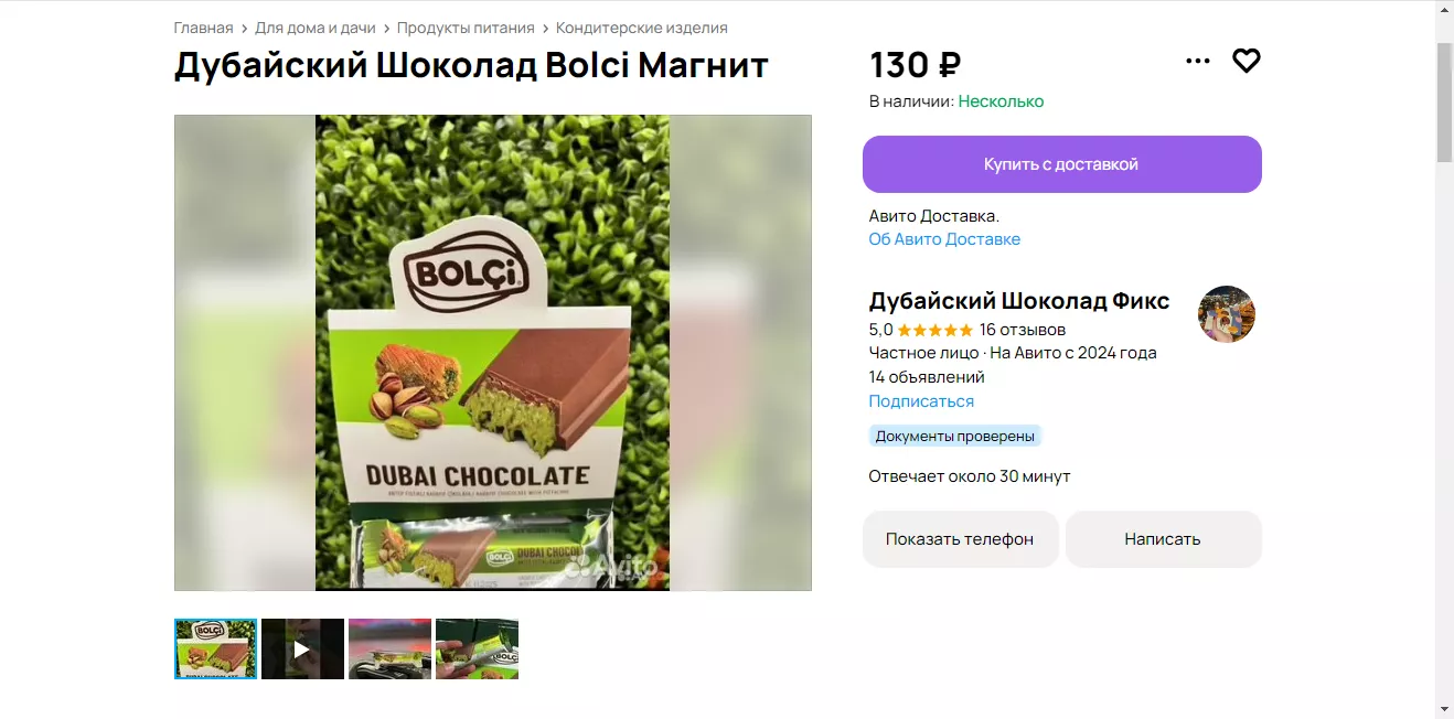 Чтобы повысить шансы на покупку оригинального дубайского шоколада, выбирайте продавцов с отметкой «Документы проверены».