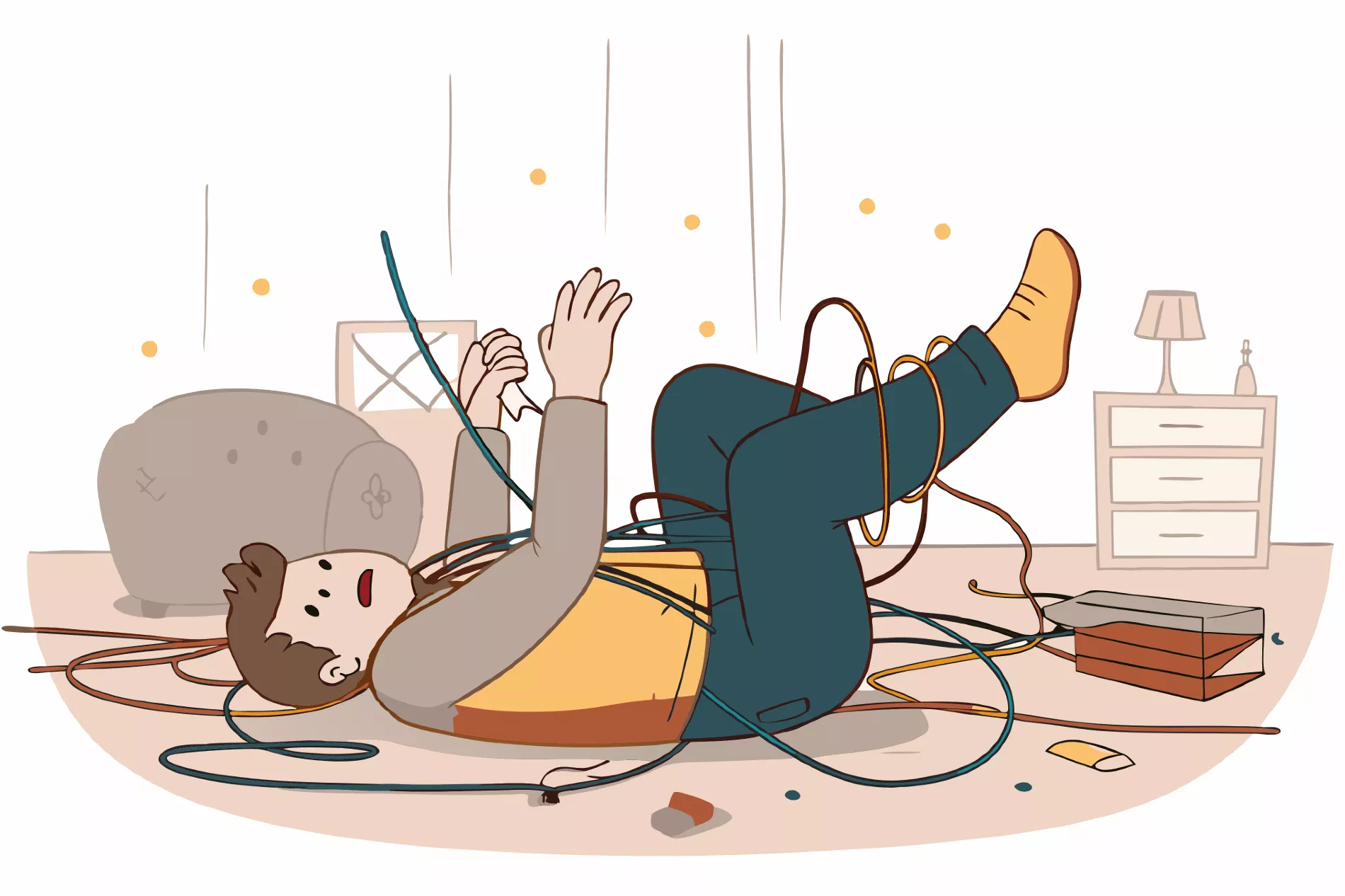 — Вы не поняли! Я ВСЁ выключил и провода все вытащил! Из роутера, из телевизора, из приставки. Вон они, большой кучей валяются для вашего мастера!