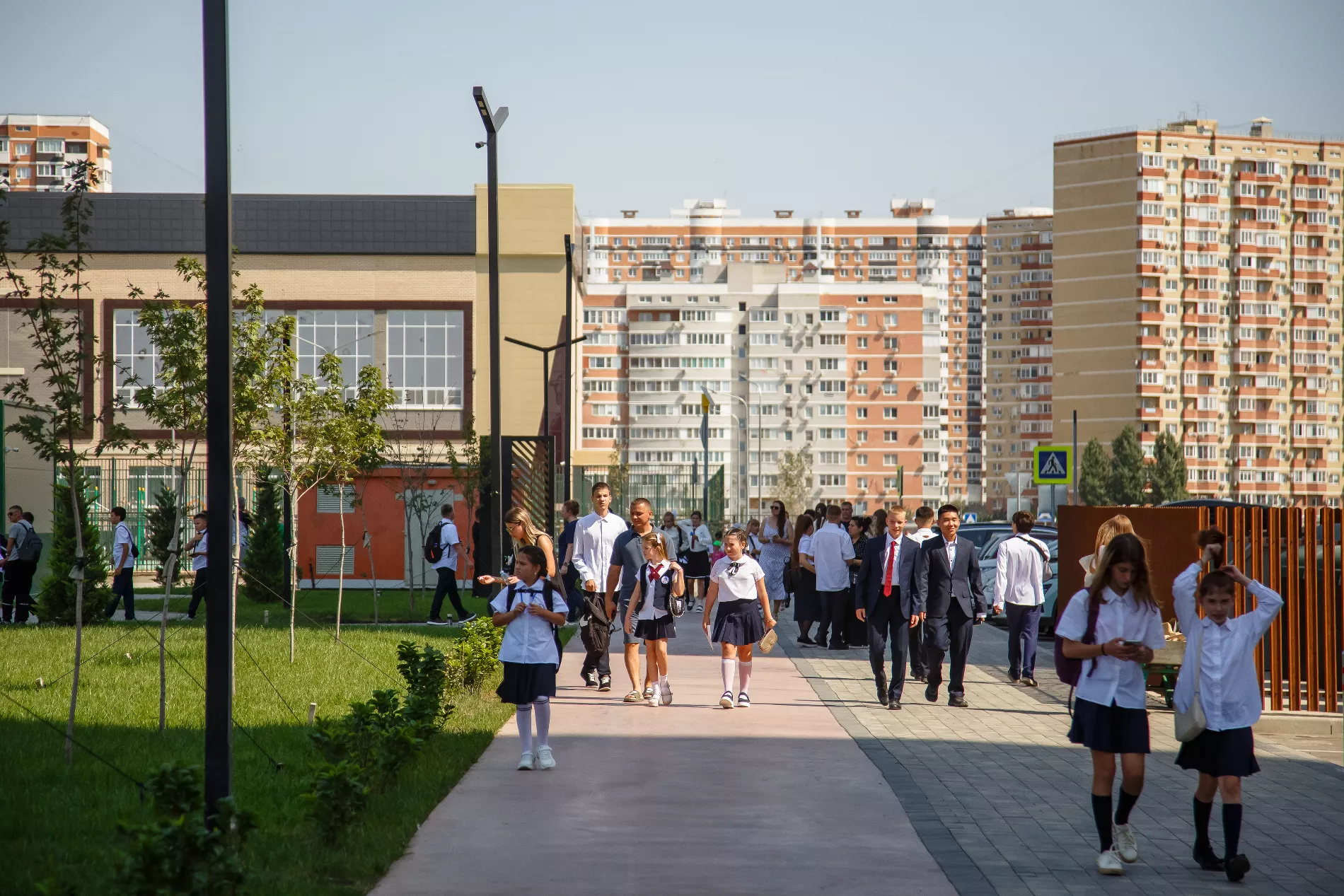 Первого сентября в микрорайоне Образцово царила праздничная суета. Улицу Штурвальную заполнили нарядные ученики, взволнованные родители и педагоги. В День знаний здесь впервые открыла двери новая школа — одна из самых больших на юге России. Учебное заведение стало филиалом школы №79 имени Героя Советского Союза Семена Кокоры.
