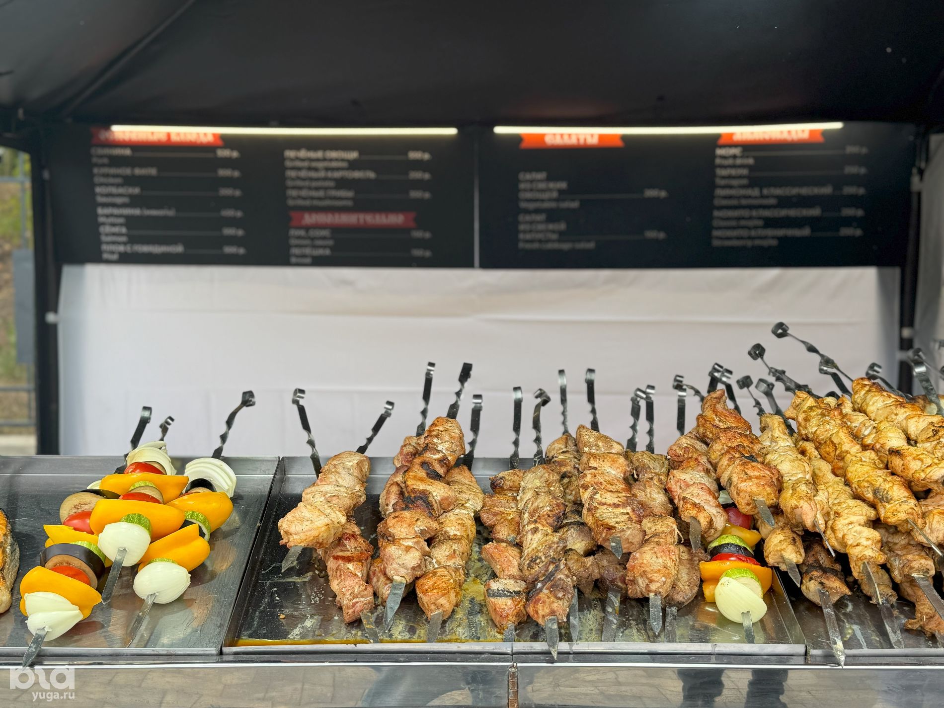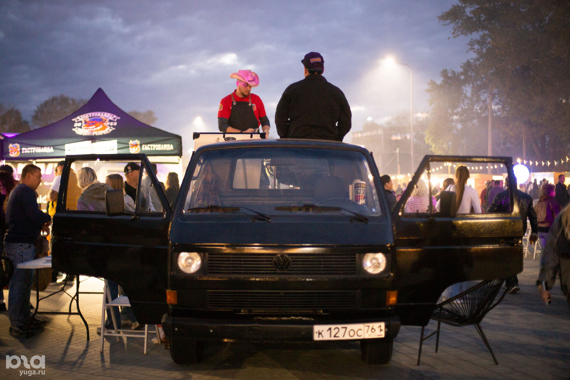 Рестораны готовили мясо, рыбу и морепродукты на гриле, жарили шашлык на мангале, предлагали фирменные бургеры, хот-доги и сэндвичи, в больших котлах готовили плов. Шашлык из свинины стоил 320-350 рублей за 100 грамм, кальмары в кляре 500 рублей за ту же граммовку, в среднем блюдо обходилось в 1500-2000 рублей, хот-доги — 500-600 рублей, бургеры — 600-900 рублей, стакан чая из самовара — 300 рублей. Алкоголь на фестивале не продавали, только в двух местах было безалкогольное пиво.