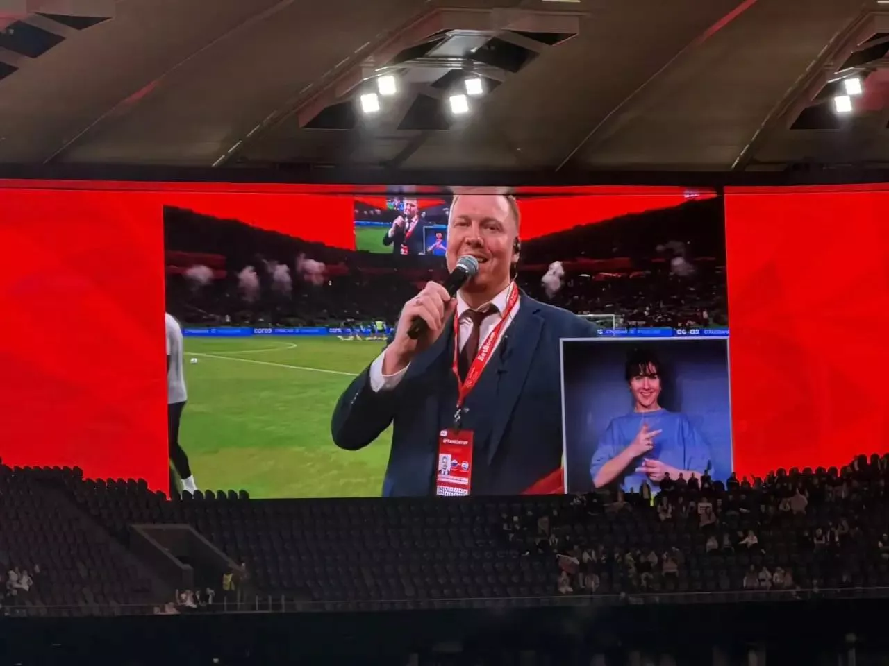 В зависимости от ситуации формат перевода сильно меняется. В МФЦ или больнице я сижу рядом с глухим человеком и специалистом — есть возможность переспросить, уточнить, перевожу в обе стороны. На концерте все иначе: я стою на сцене и перевожу синхронно — нужно мгновенно и точно передать все, что говорит ведущий. А на футбольном матче — например, когда была игра сборной России с Никарагуа, — я находилась в отдельном помещении, меня выводили на экраны стадиона в специальном окошке, и все зрители и болельщики могли меня видеть.