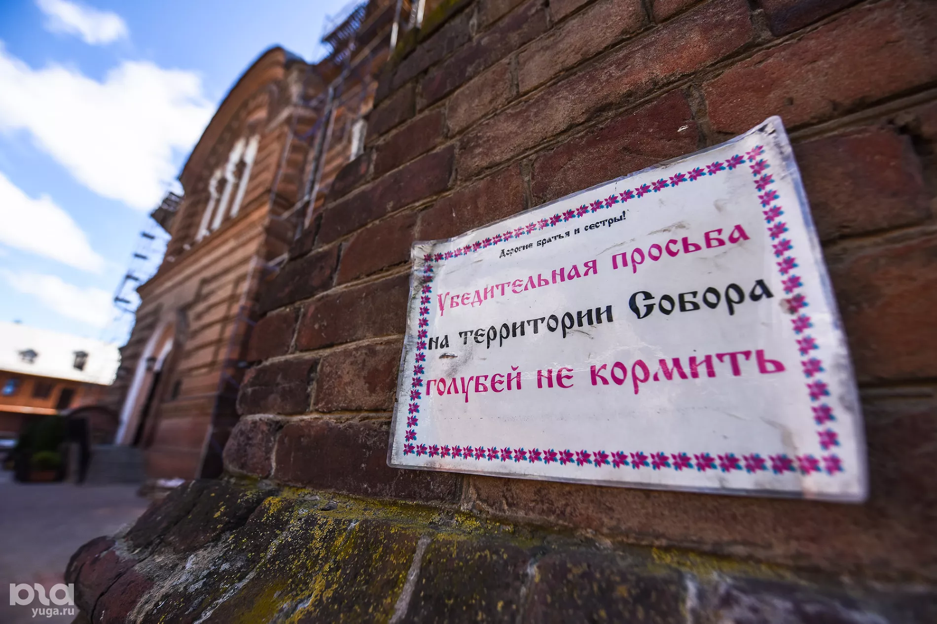Зато в храме активно ведется сбор различных пожертвований, в том числе и на цветы для украшения собора к Пасхе. И еще: если вы вдруг мечтали покормить на территории собора голубей, у нас для вас плохие новости — на стене храма висит убедительная просьба этого не делать.
