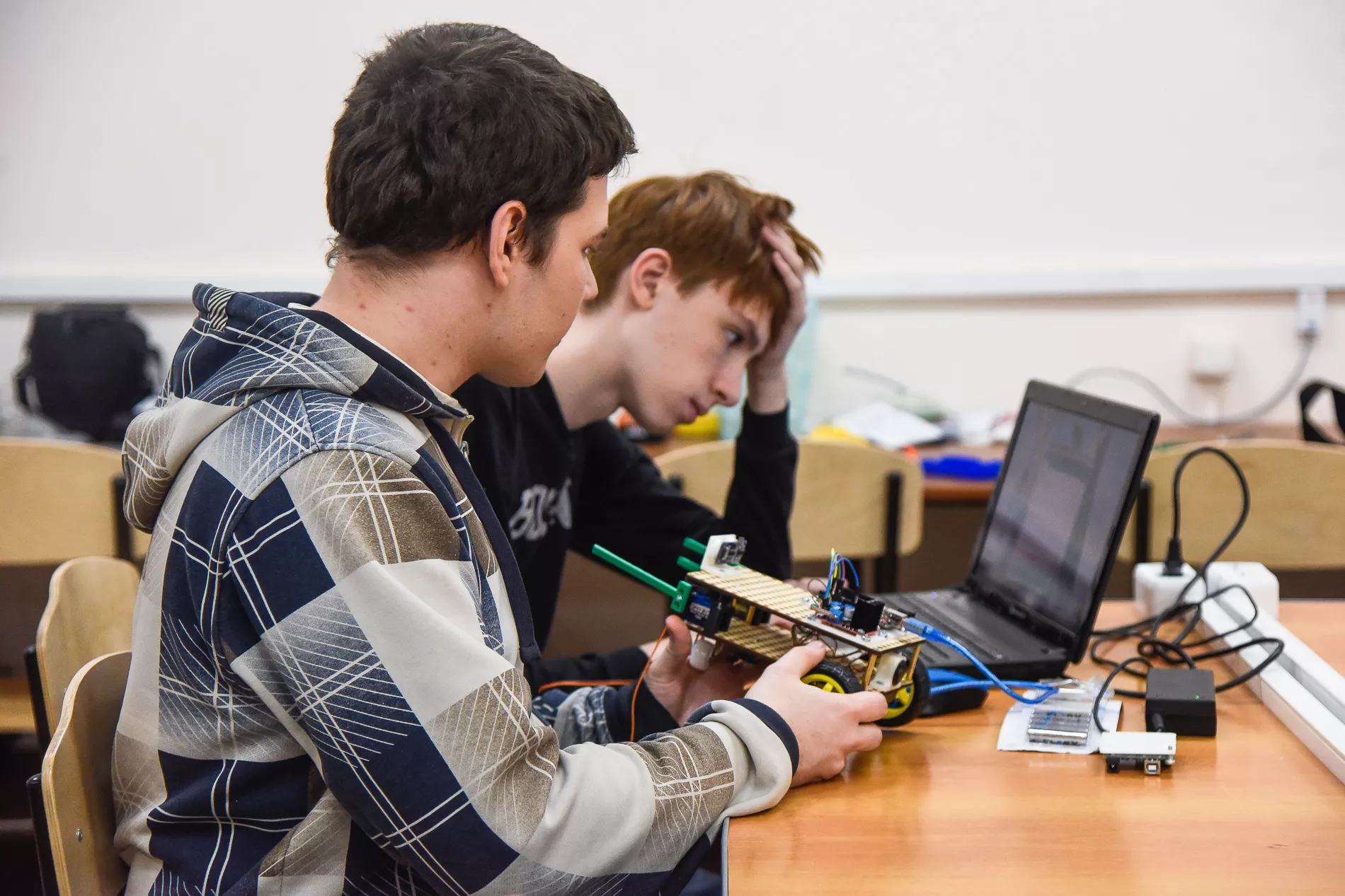 Поскольку все мы сами дети-олимпиадники, которые в детстве много времени посвящали образованию и самообразованию, мы хотим создать такую же структуру для современной молодежи. На данный момент мы организовали курсы по робототехнике, где учим созданию каких-то устройств с нуля. То есть не из конструктора, а по-взрослому — из электронных компонентов, моторчиков, собственно спроектированных и изготовленных на 3D-принтере деталей. Люди учатся воплощению своих мыслей в конкретных материалах и смотрят, как это работает. Занимаемся со школьниками, начиная с 14 лет, имеющими базис по физике и математике, который мы совершенно спокойно можем развивать дальше и давать программирование и схемотехнику с нуля.